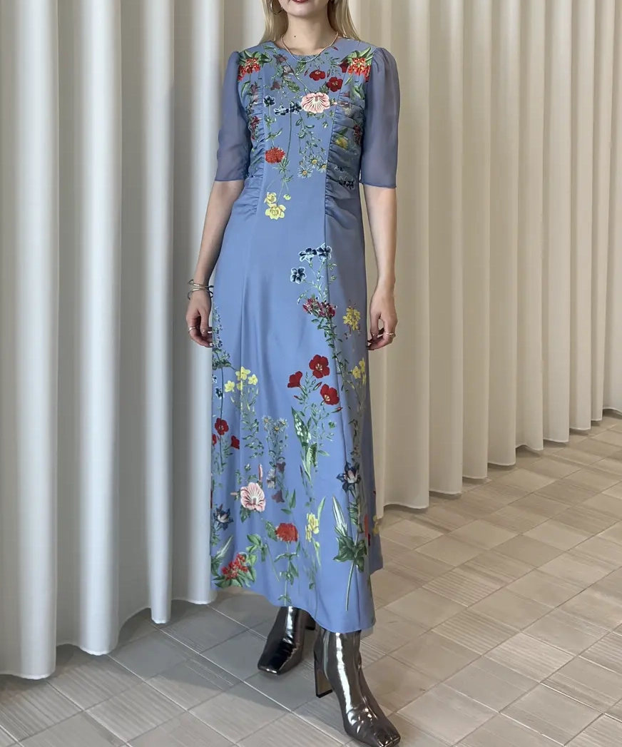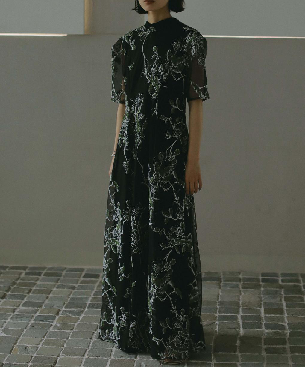 【2サイズ】Triacetate Floral Embroidery DRESS
