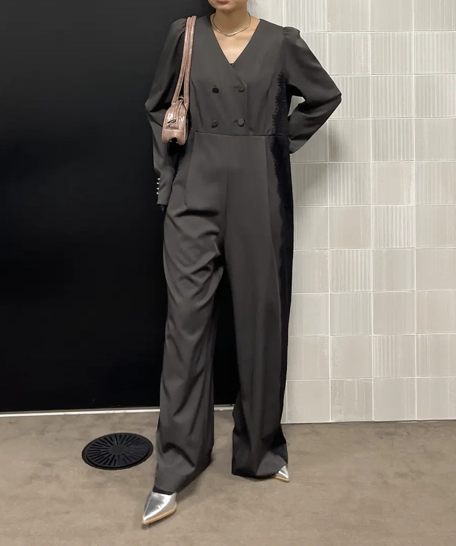 【2サイズ】Back Satin Crepe Georgette Embroidered Cuffs I-Line Dress - black