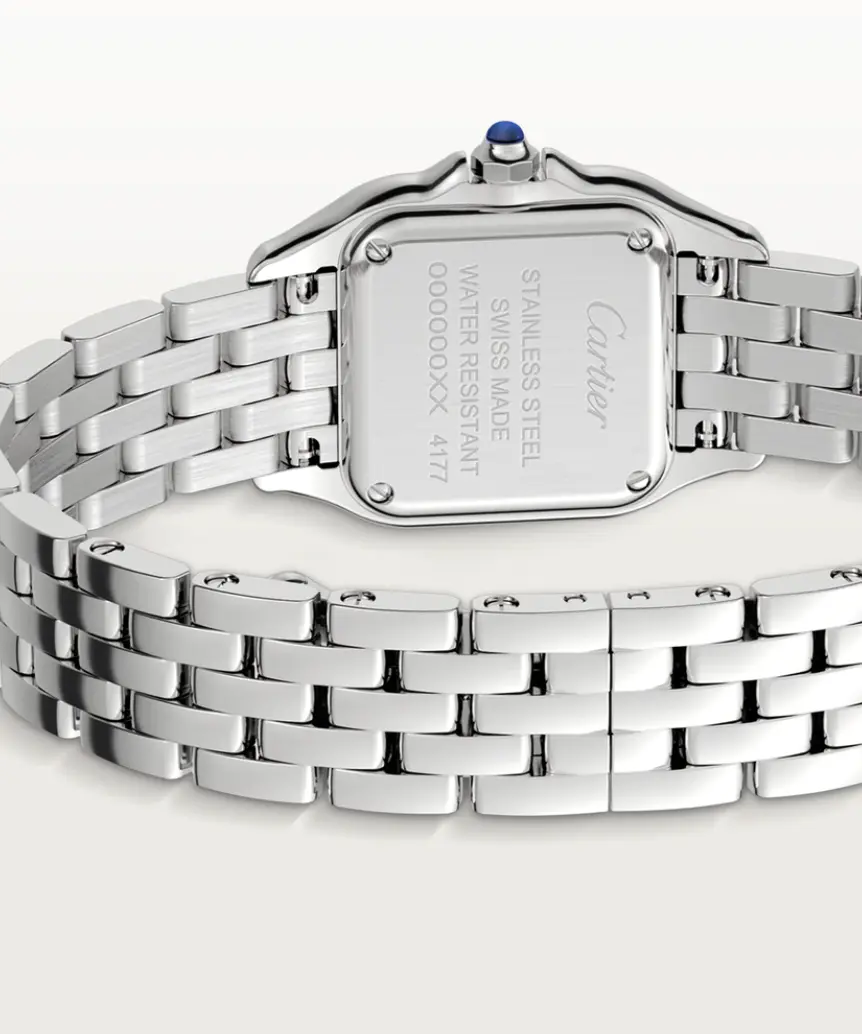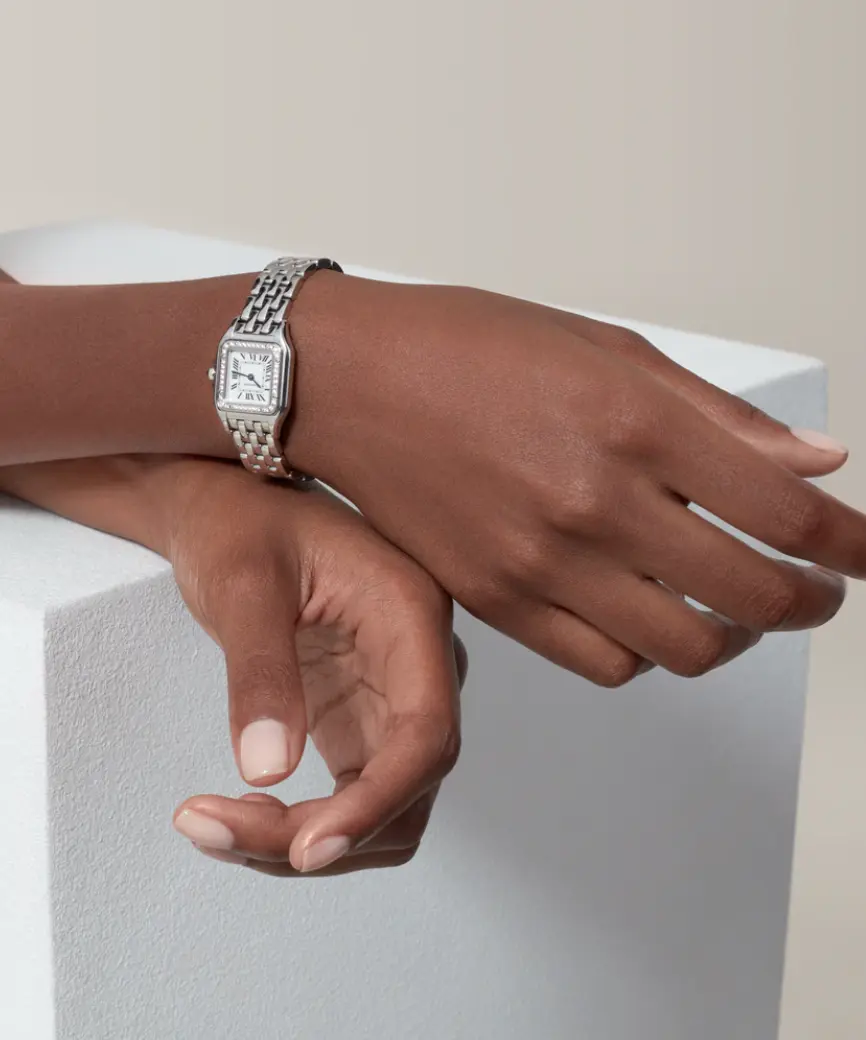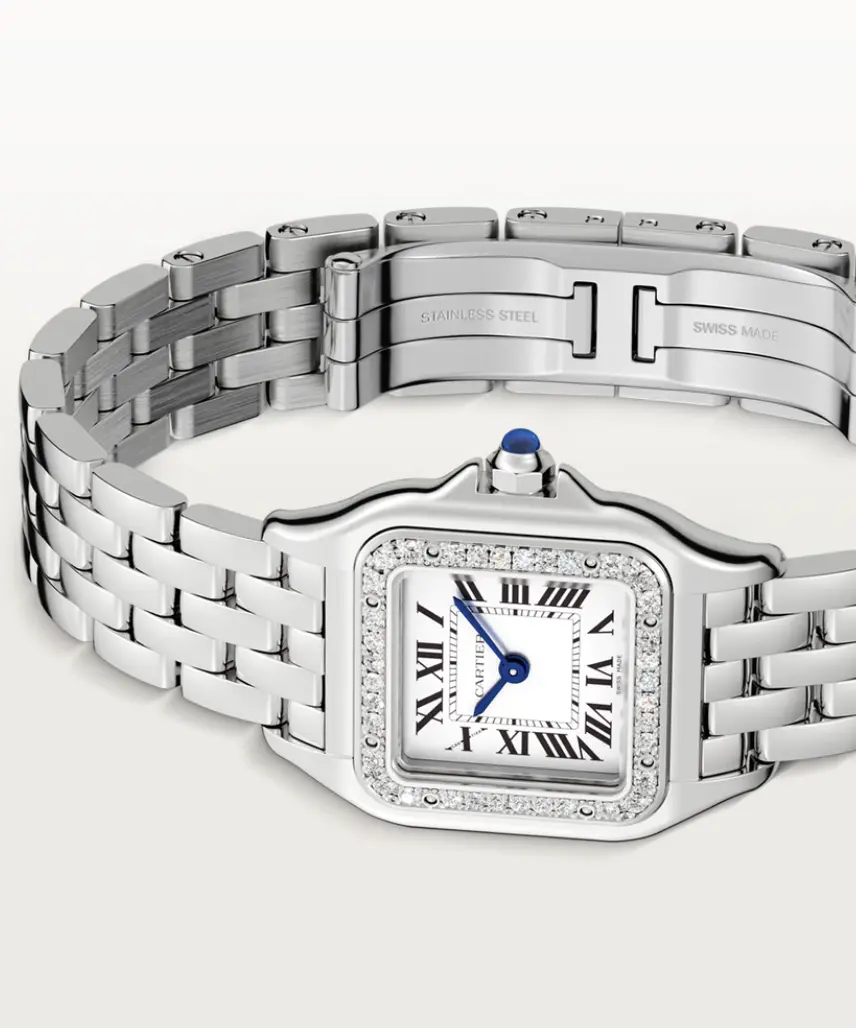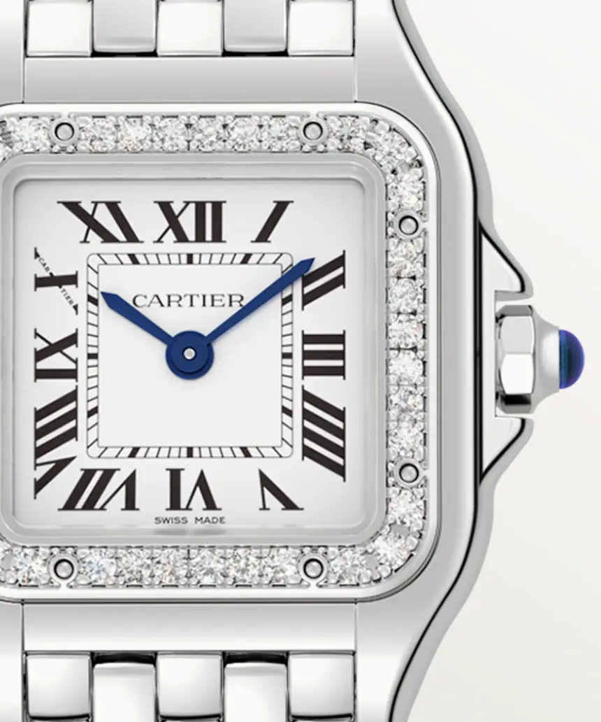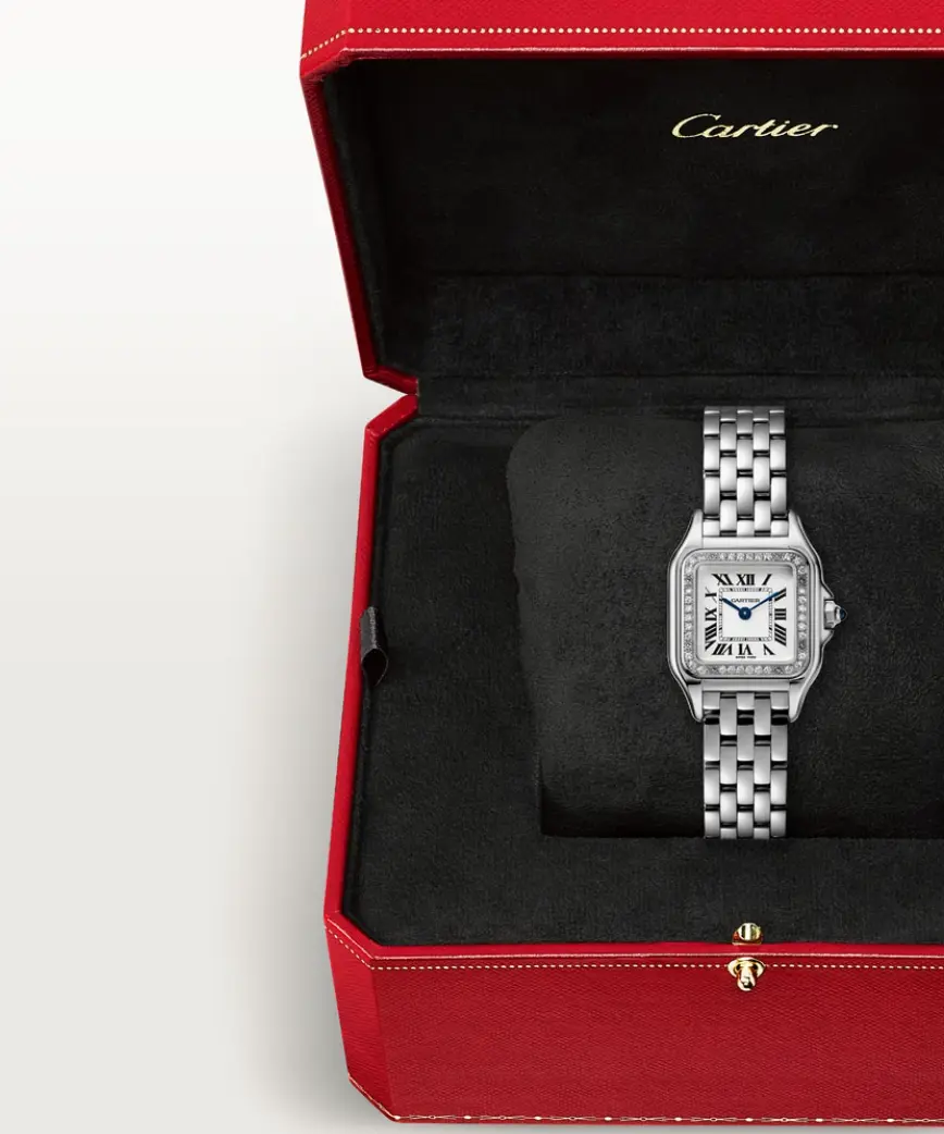 パンテール ドゥ カルティエ ウォッチ、SM、クォーツムーブメントです。時計でもジュエリーでもあり、カルティエを最も象徴するデザインのひとつであるパンテール ドゥ カルティエ ウォッチ。1980年代に誕生してから、より現代的な装いになり、多くの女性に愛される、まさに真のスタイリッシュなアイコンです。