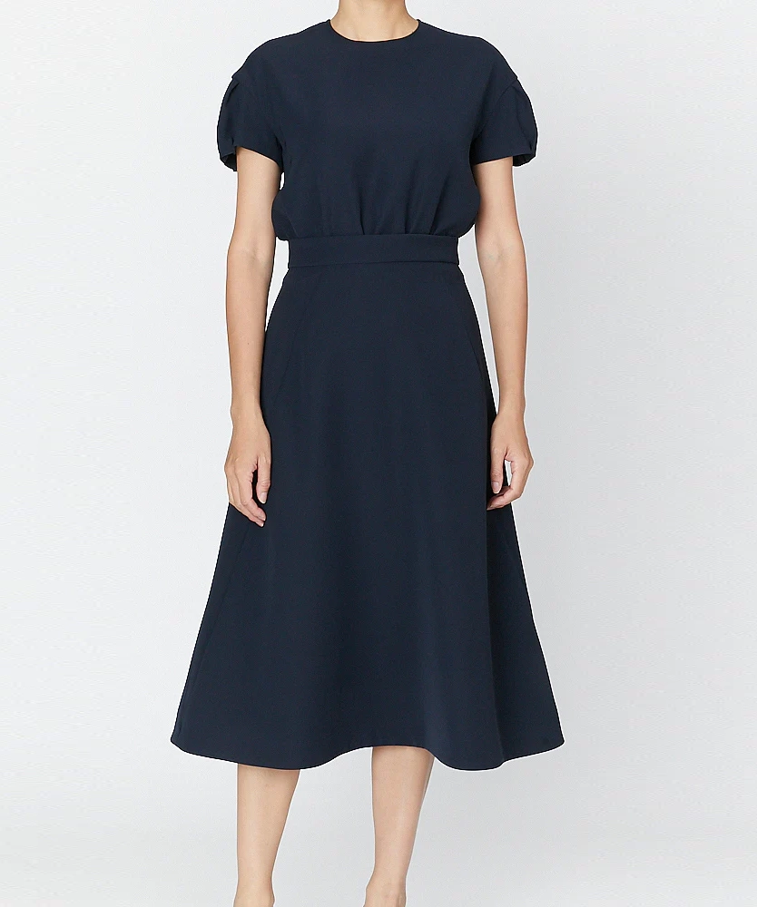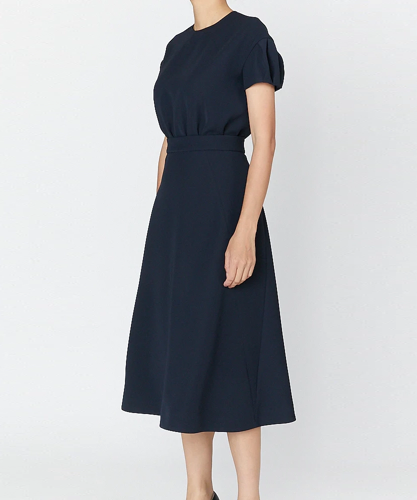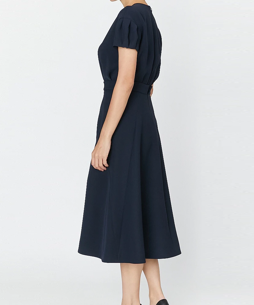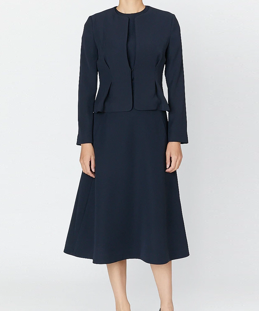 身体を美しく見せるように精緻に設計された、シンプルで美しいシルエットのフレアドレス。滑らかでとろみのある生地で仕立てており、シワになりにくく、着心地の良い一着。普段着からフォーマルシーンまでと汎用性が高く、同素材のジャケットと合わせてセットアップでもお召し頂けます。