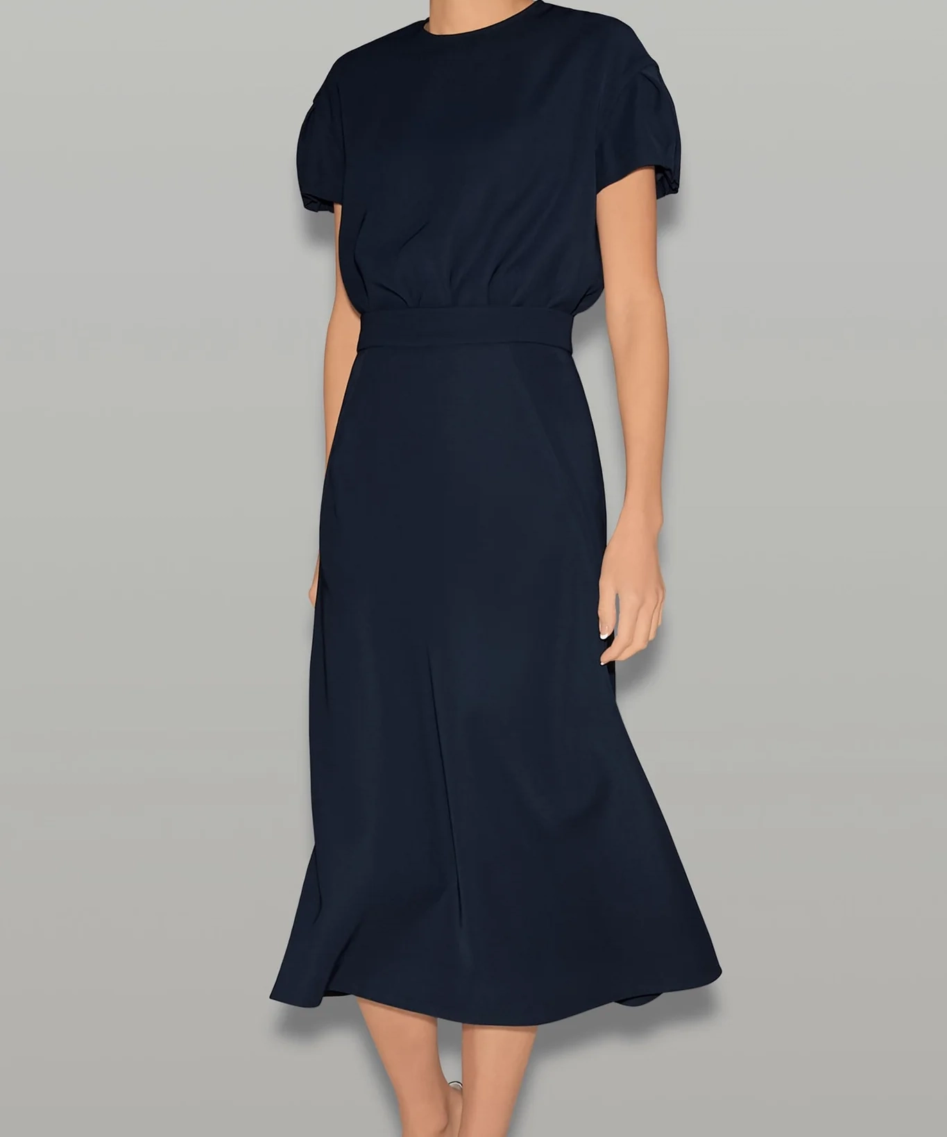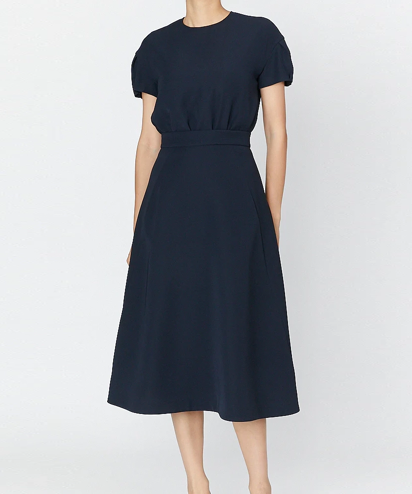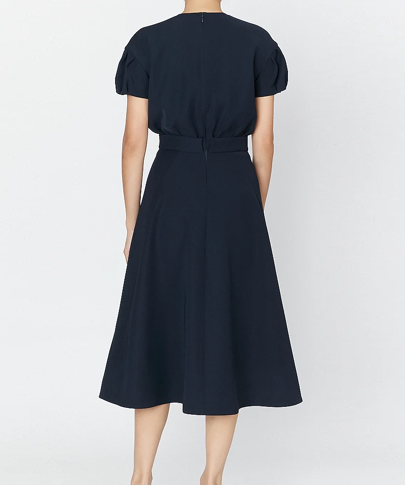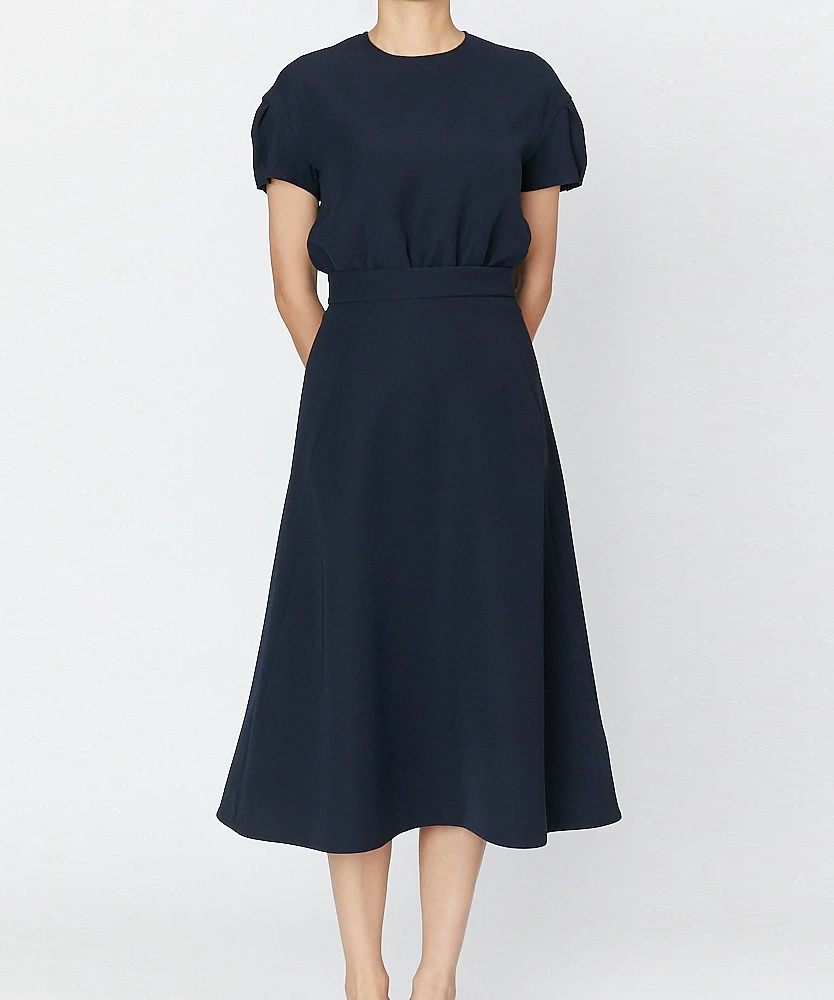 身体を美しく見せるように精緻に設計された、シンプルで美しいシルエットのフレアドレス。滑らかでとろみのある生地で仕立てており、シワになりにくく、着心地の良い一着。普段着からフォーマルシーンまでと汎用性が高く、同素材のジャケットと合わせてセットアップでもお召し頂けます。