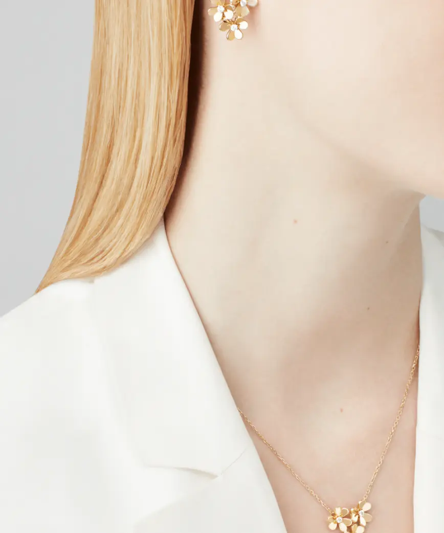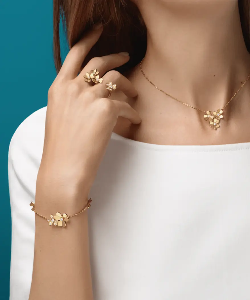 そよ風の中で花々が踊るように、グラフィカルに、軽やかに輝くヴァン クリーフ&アーペルのフリヴォル コレクション。立体的なハート形の花びらに、鏡面仕上げのゴールドやダイヤモンドがまばゆい輝きを与えます。