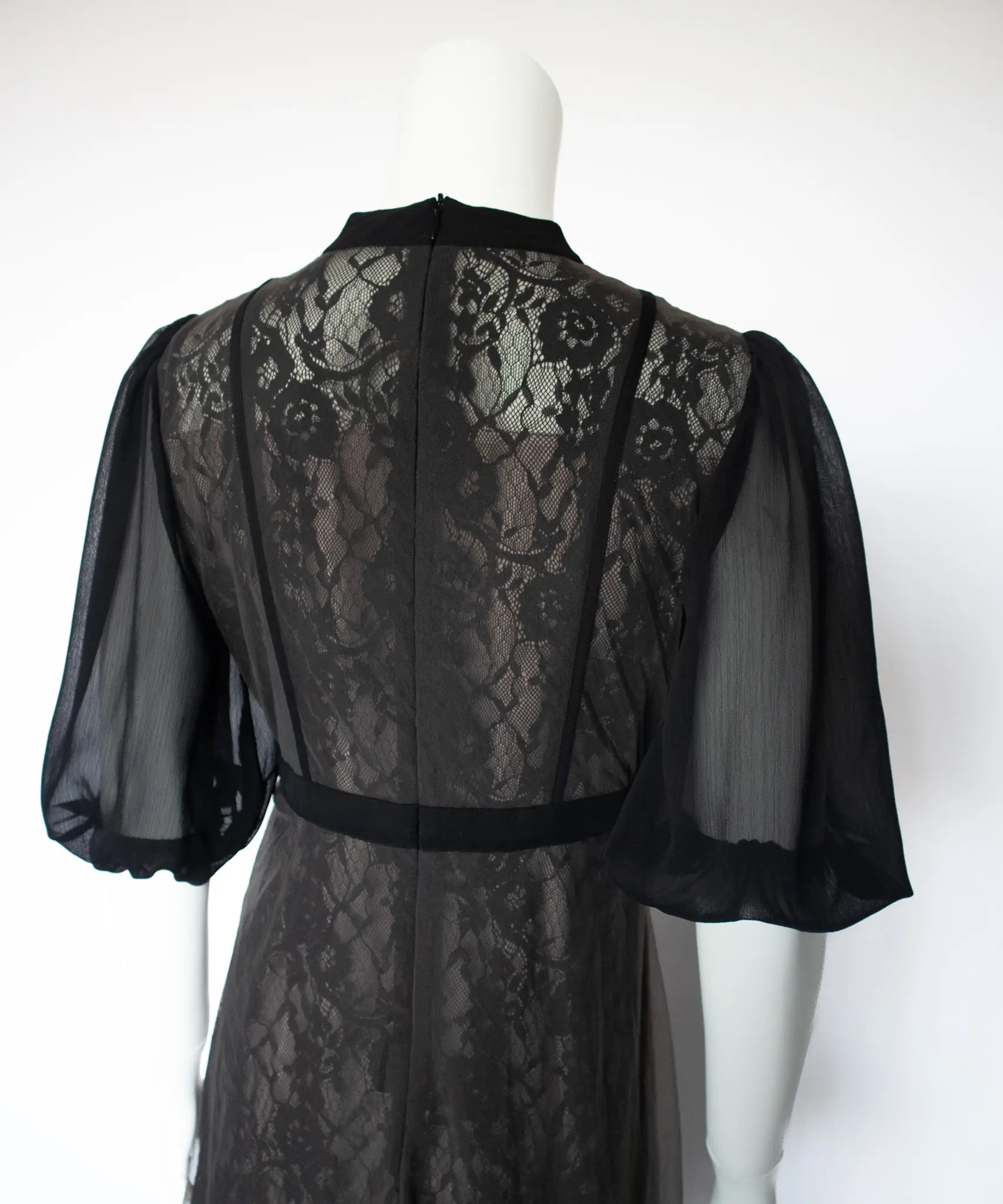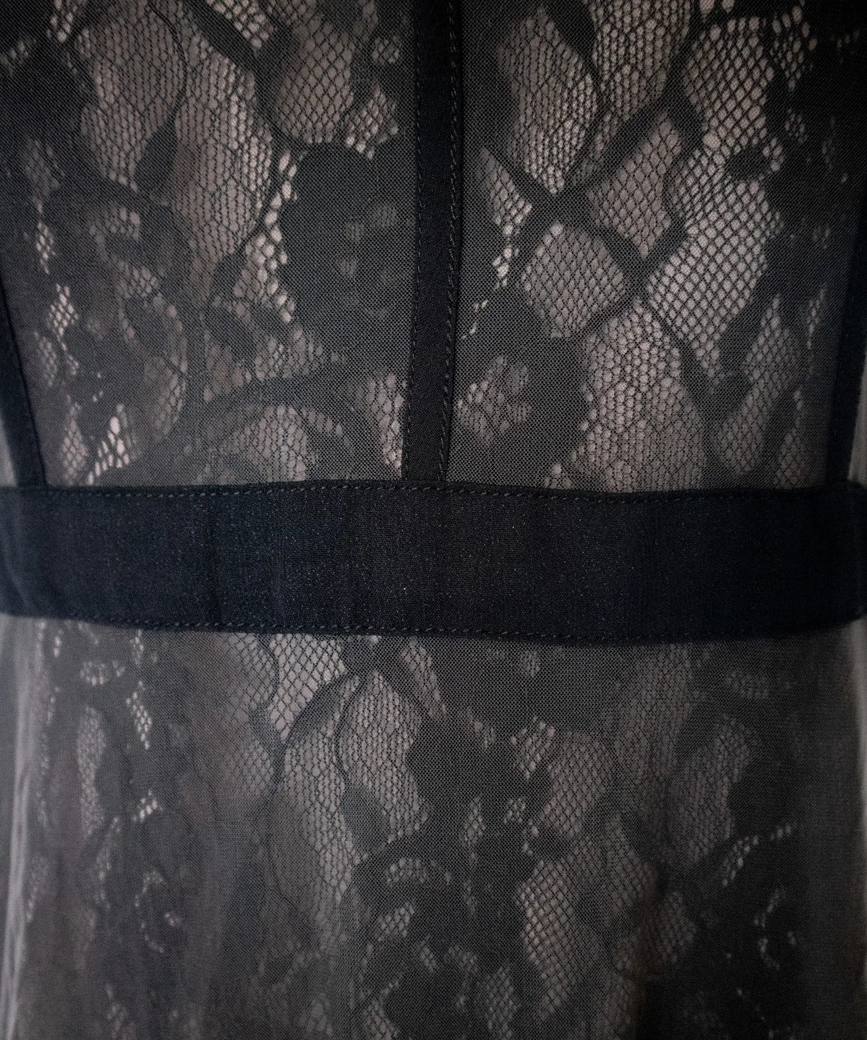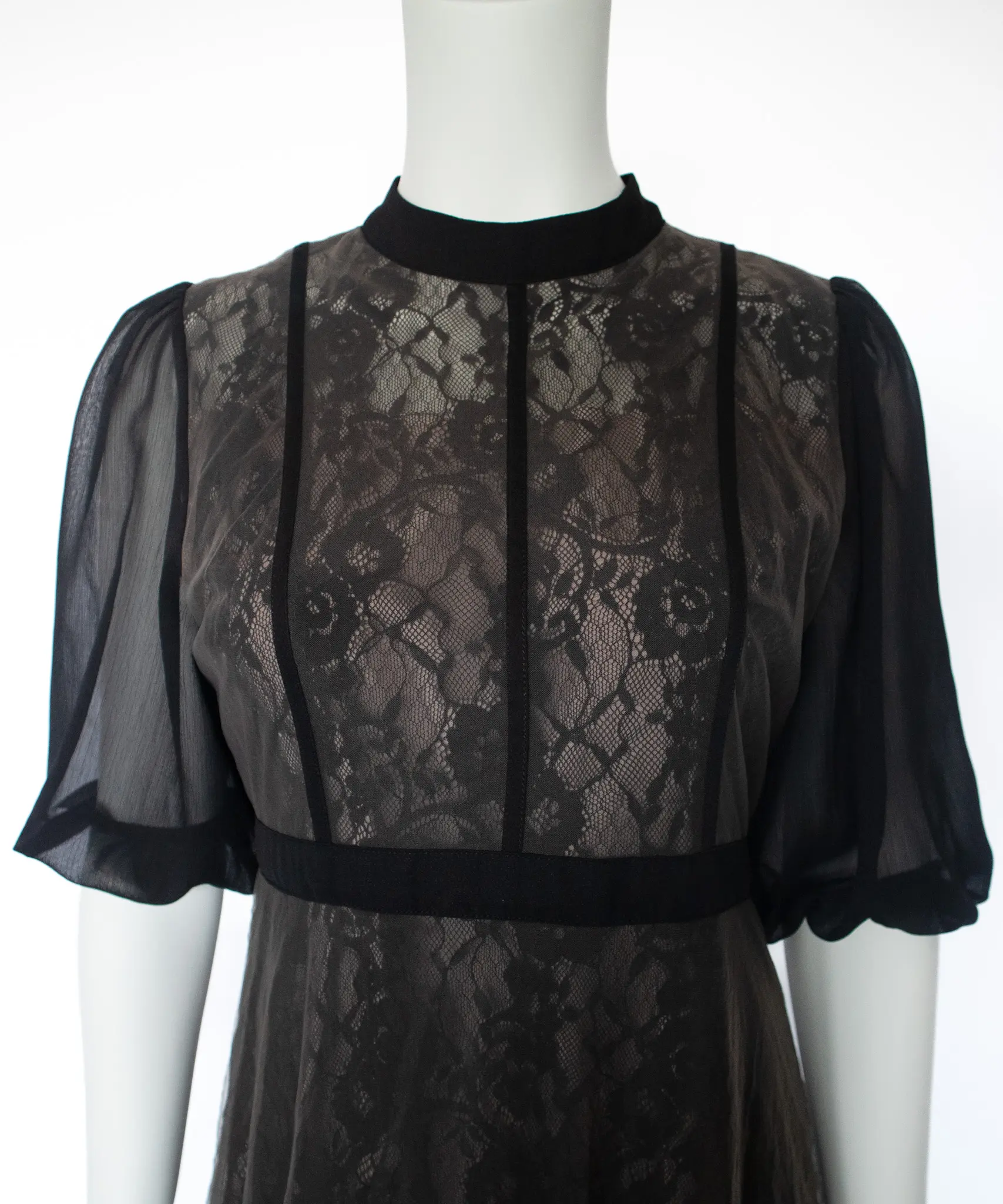 花柄とチュールのプリッツが特徴のハイウエストチュールレース切り替えドレス