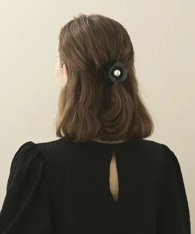 アレクサンドル ドゥ パリのアイコンとも言える人気デザイン、カメリアの新作バレッタ。花芯にはパールをあしらい、待望のデザインが仕上がりました。6cmバレッタは、程よい大きさの花びらに1粒パールが映えて、寒い日でも暖かみある華やかさをもたらしてくれます。