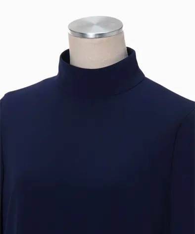 マメ クロゴウチを象徴するアイコニックなハイネックドレス。