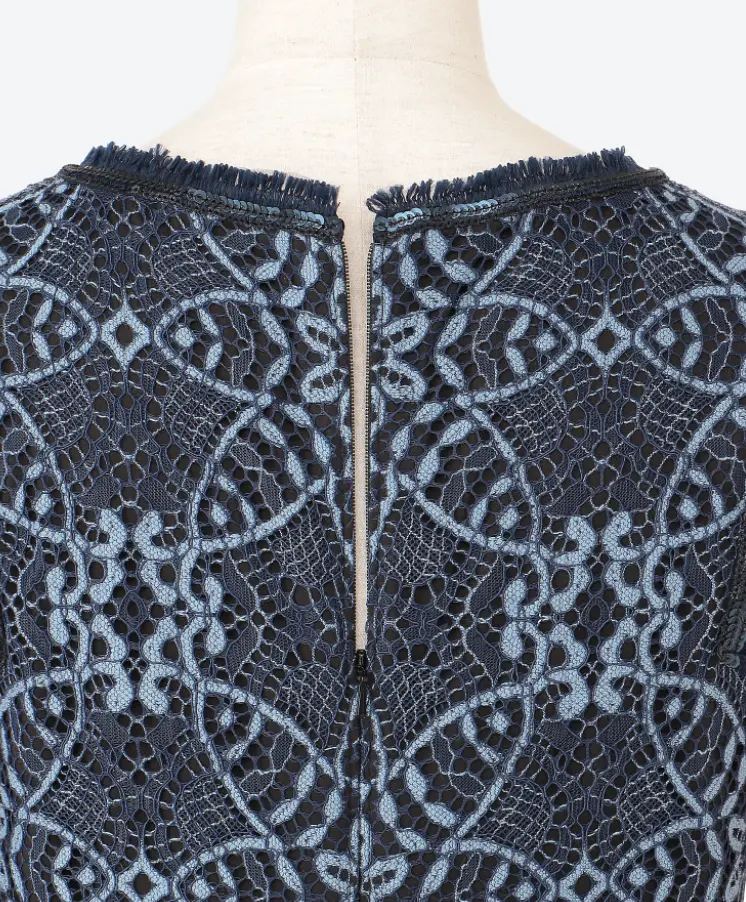 美しい装飾使いが目を惹く<タダシ ショージ>のドレスです。フラワーレースやフリンジ、スパンコールなどを組み合わせて華やかにデザインしました。緩やかに広がるAラインシルエットで、大人の女性らしさが引き立ちます。膝が隠れる上品な丈感もポイント。背中に備えたファスナーがスムーズな着脱をサポートします。