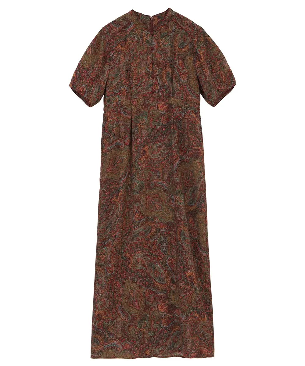 ヴィンテージのゴブラン織りを軽やかな素材にプリントで表現したCLANEオリジナル柄のワンピース。