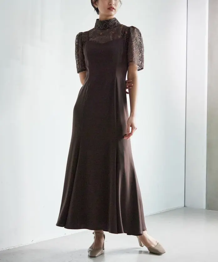 ボトルネックショートトップスとマーメイドラインが美シルエットなワンピースががセットになったオケージョンドレス。