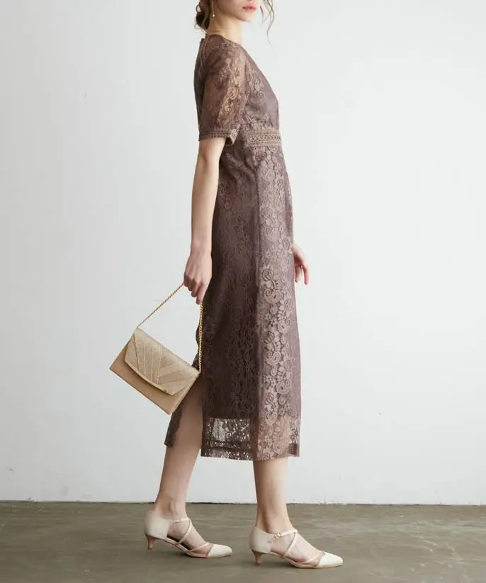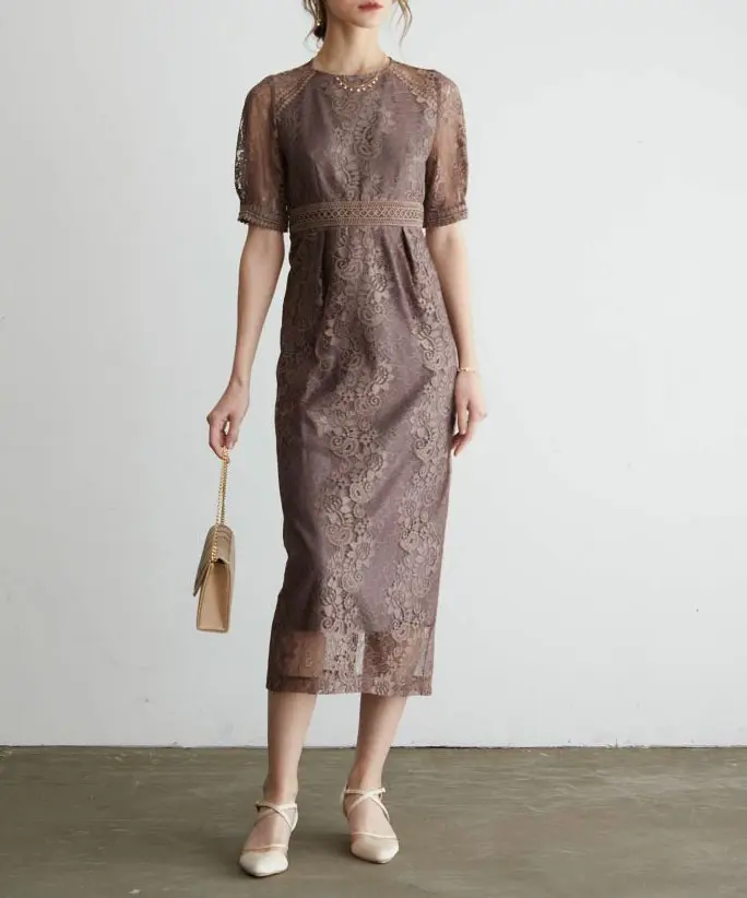立体感のある上品なコードレースが華やかさを演出してくれるタイトワンピース。