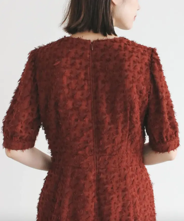 デザイン自体はシンプルですが、毛足が長いジャガード素材が、とびきり華やかな印象を与え、オリジナリティある着こなしを演出します。