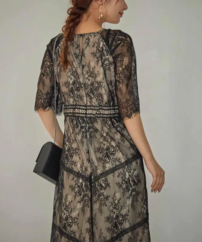 ナローラインでほっそりと見せてくれ、都会的でこなれた印象に。スタイルアップ効果も抜群です。大人っぽく着こなせる、上品な総レースドレスです。