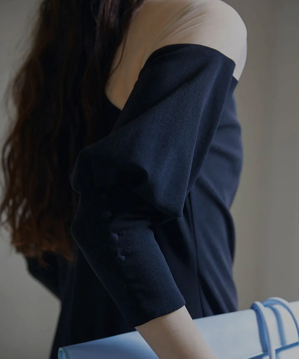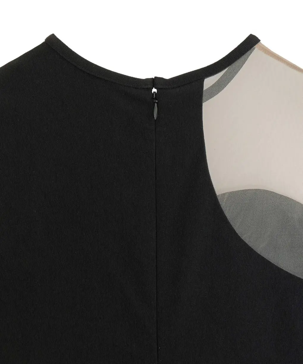 デコルテ周りのカーブとシアー素材が女性らしい抜け感を演出してくれます。