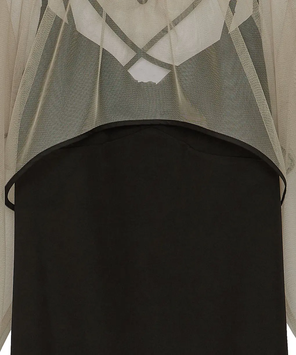 ドレスとチュールのショートトップスのレイヤードアイテム。