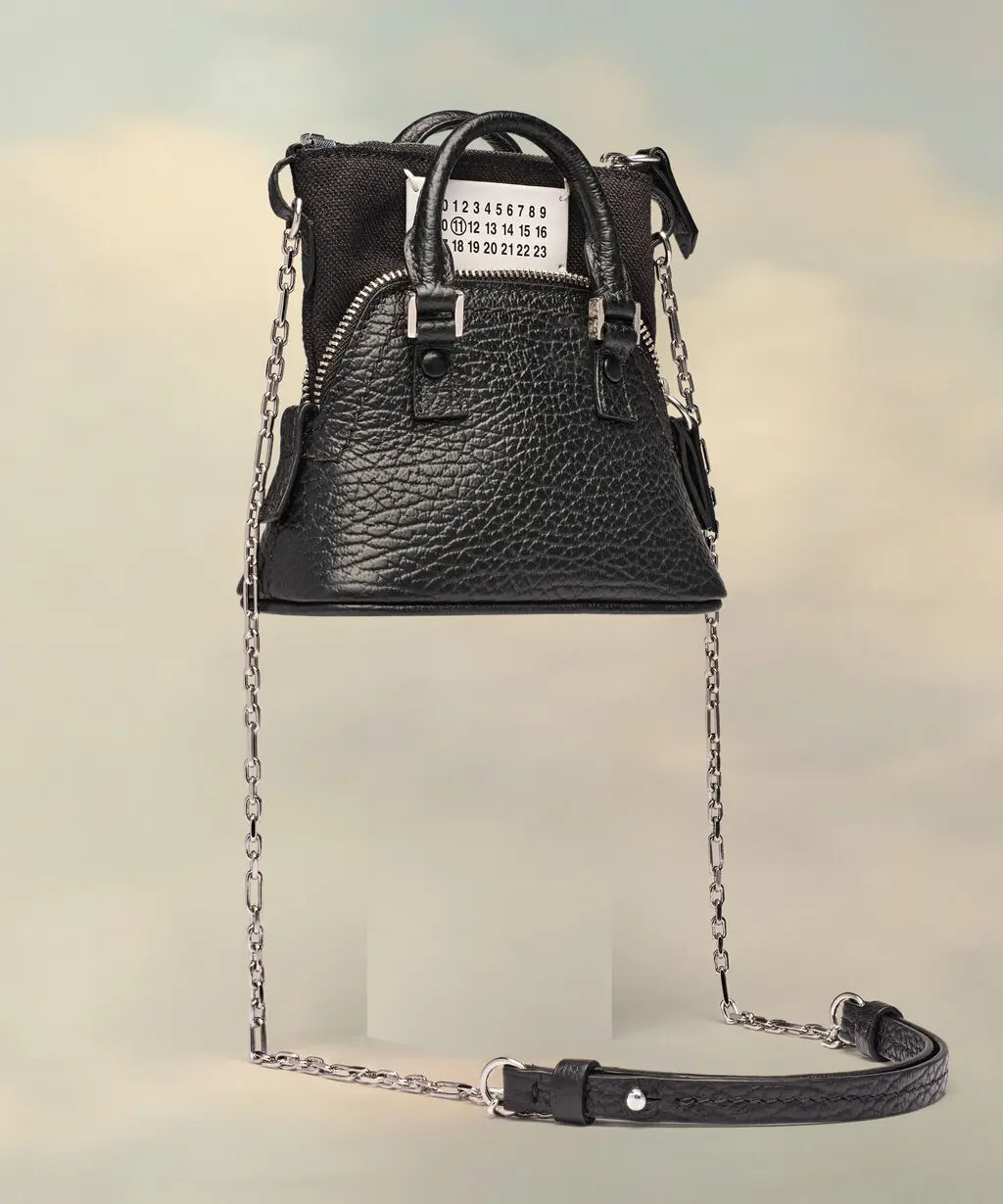グレイニーレザー製の5AC Classiqueベビーです。クロスボディストラップが付いています。フロントには、アクセントとしてロゴ入りのラベルが配されています。アイコニックな5ACのネーミングは、フランス語でバッグを意味する‘Sac’に由来しています。メゾン マルジェラの‘Anonymity of the lining’(ライニングの匿名性)の概念が反映されています。このバッグのメタルリベットは手作業で革張りがされてあり、必要な部分のみクリーニングのために金属が表れています。トーナルカラーでハンドペイントされたエッジなどのディテールに職人技が見て取れます。