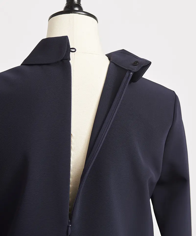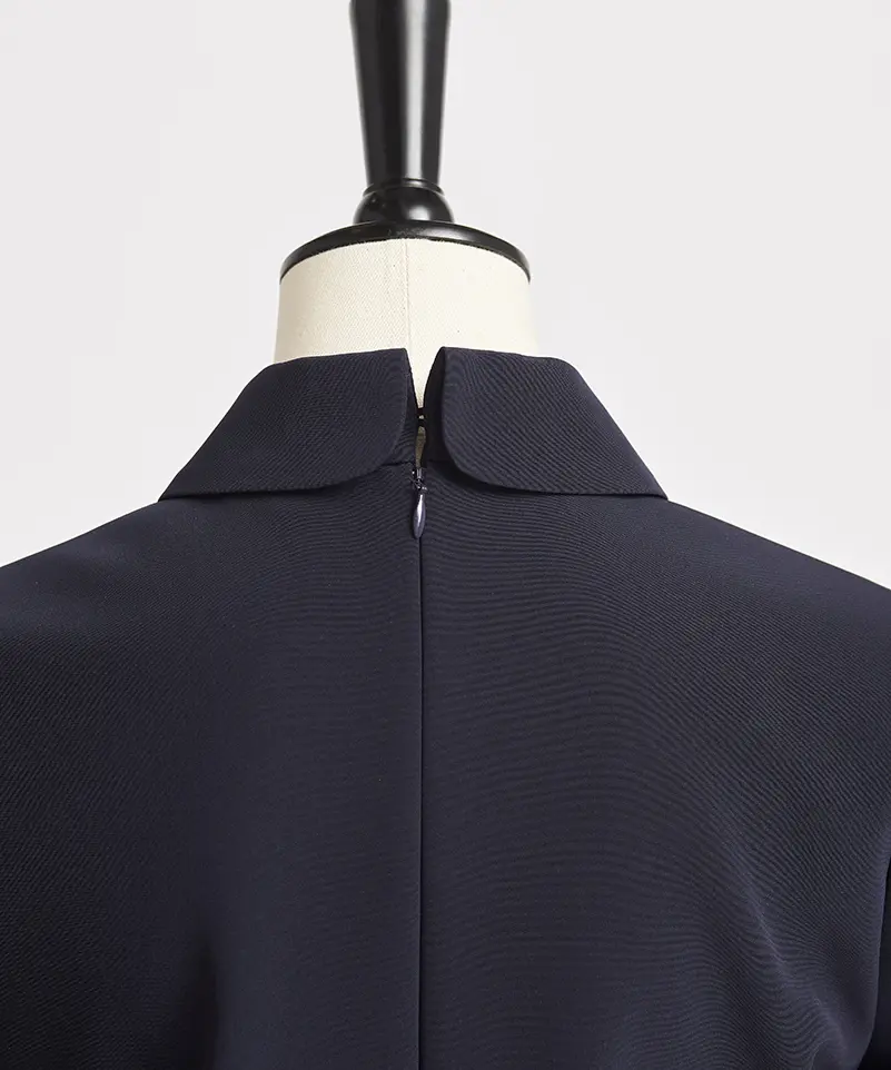 衿のラウンド具合や後ろ衿の高さなど細部に拘ることで顔回りを華やかに魅せてくれます。素材はセレモニーに最適なダブルクロスを使用しています。