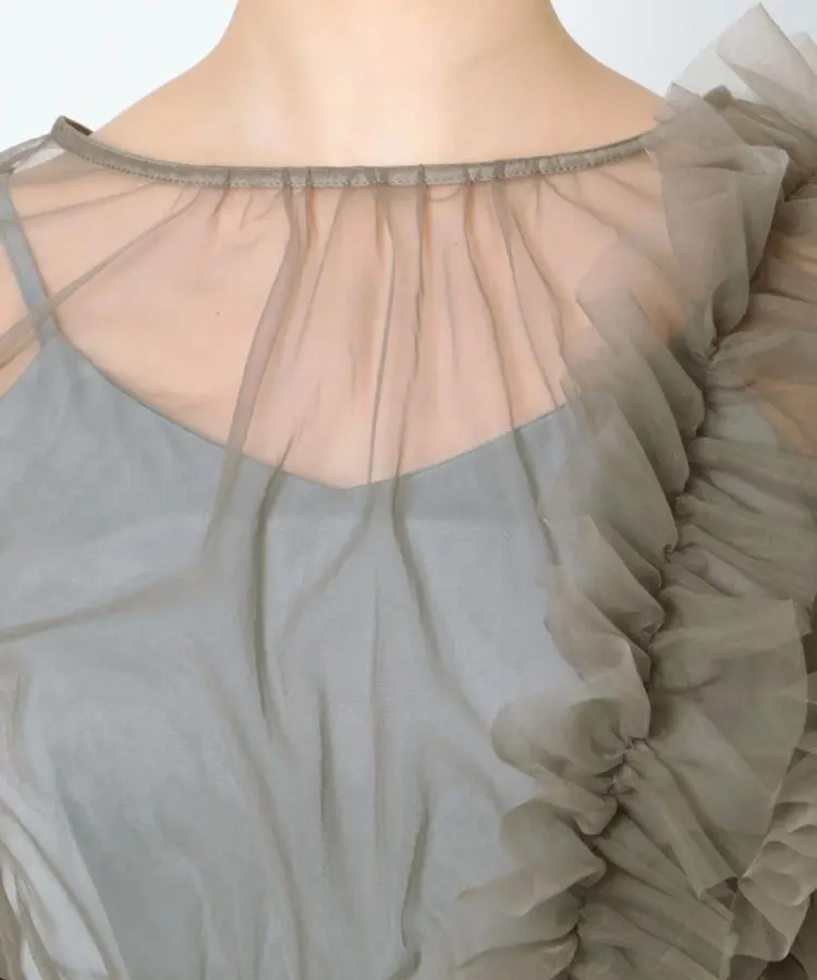 トレンド素材のチュールを使ったパンツドレス。