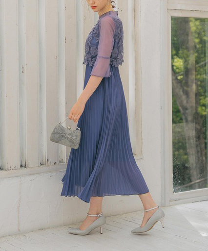 動くたびに美しく揺れる上品なプリーツスカートは、結婚式や二次会などパーティシーンにぴったり。