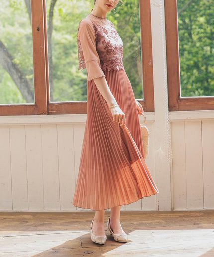 動くたびに美しく揺れる上品なプリーツスカートは、結婚式や二次会などパーティシーンにぴったり。