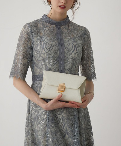 配色レースの生地が美しい、ハシゴレース切り替えワンピース。