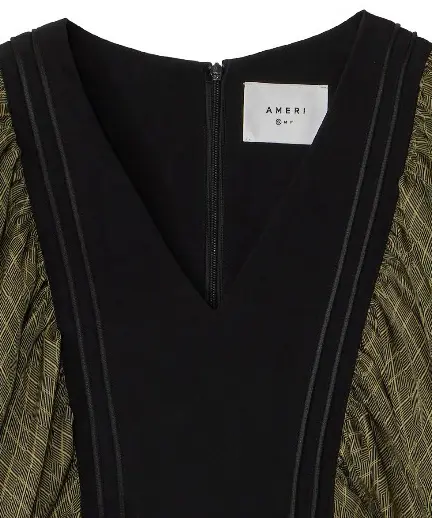 一枚で様になる幾何学柄のボリュームスリーブワンピース。