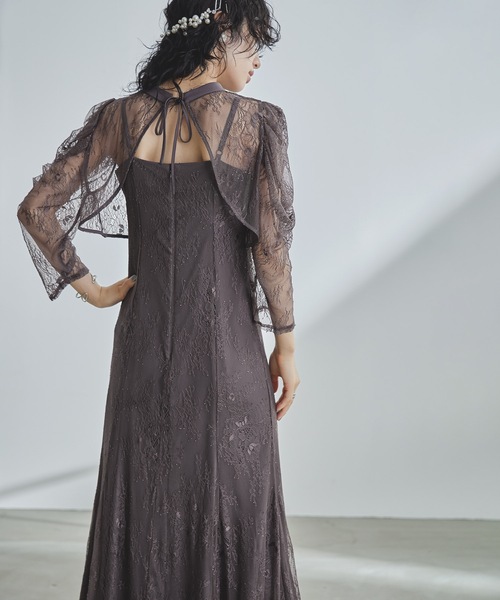 総レースのキャミソールドレスと前後で着回し可能なボレロのセットで様々な着こなしが楽しめます。