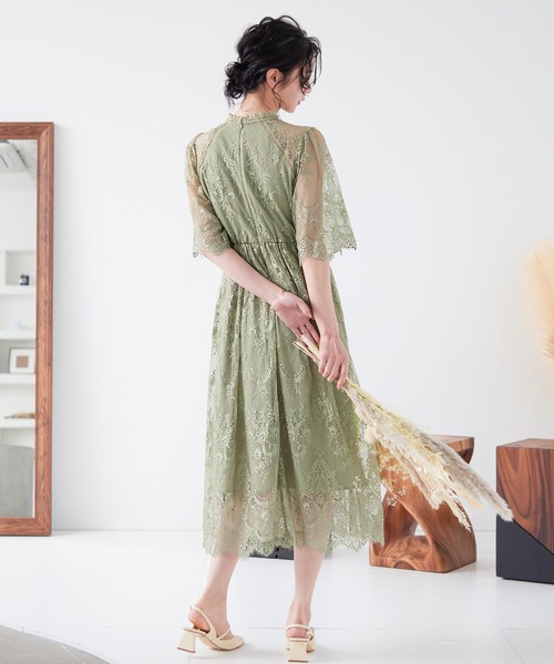 袖は5分丈のレースシアー素材なので二の腕をカバーできます。