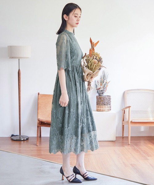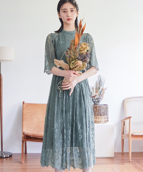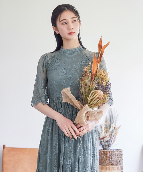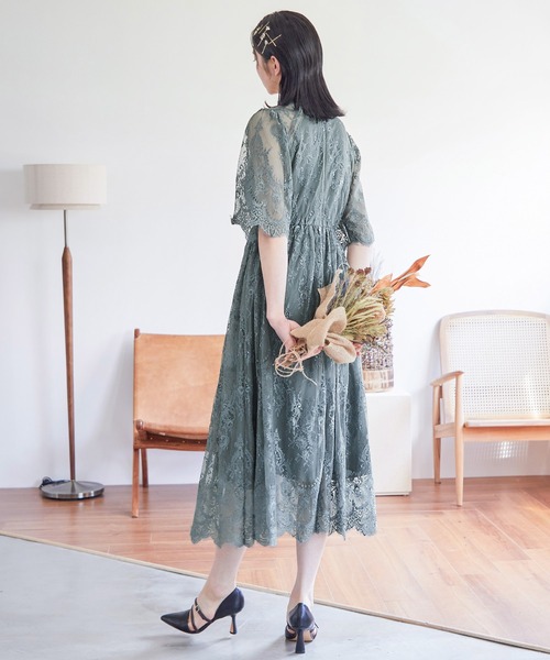 袖は5分丈のレースシアー素材なので二の腕をカバーできます。