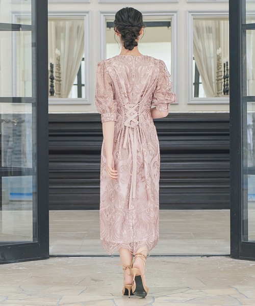 大柄の刺繍レースでレトロな雰囲気のドレスです。