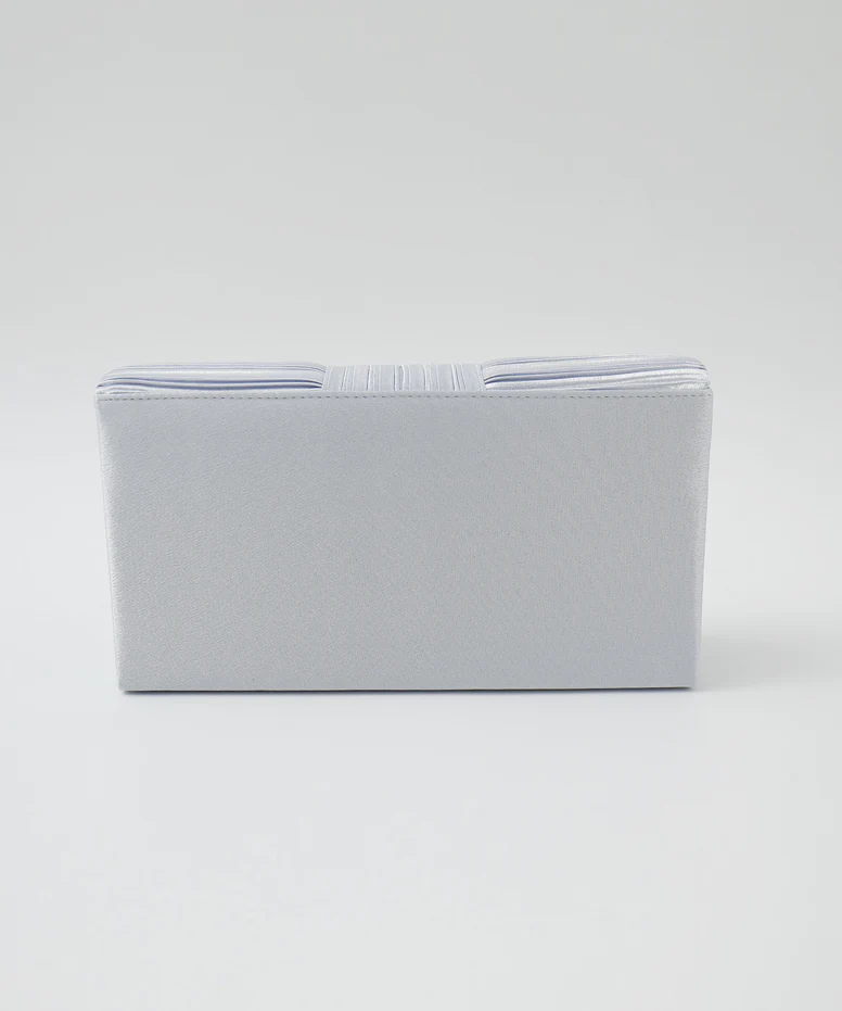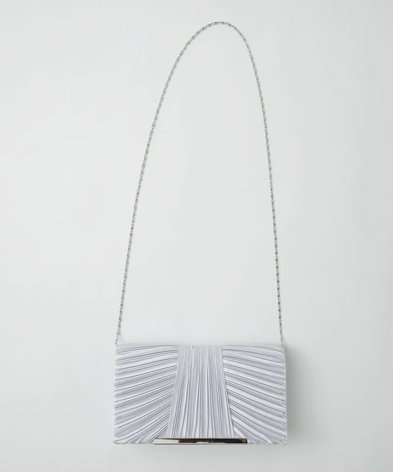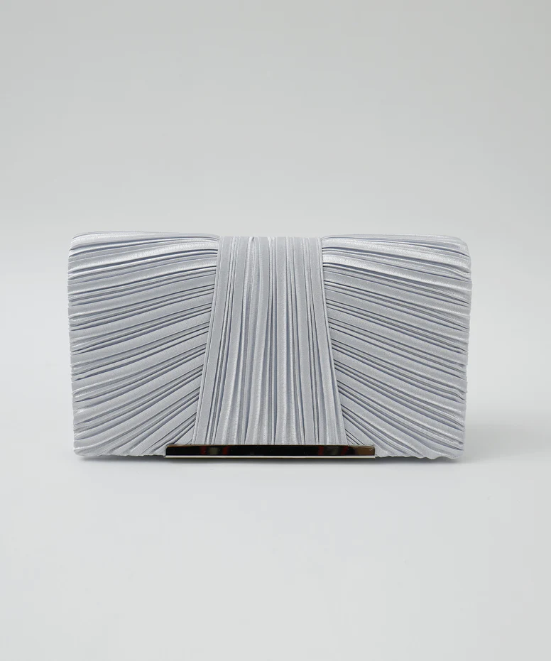 サテン生地にプリーツを施した上品なバッグで、結婚式などパーティーシーンにぴったりです。