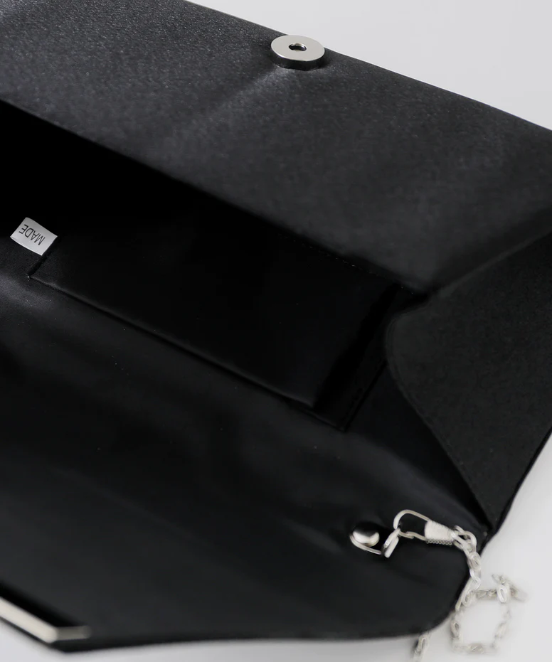サテン生地とラメ生地の切り替えがおしゃれで華やかなバッグです。