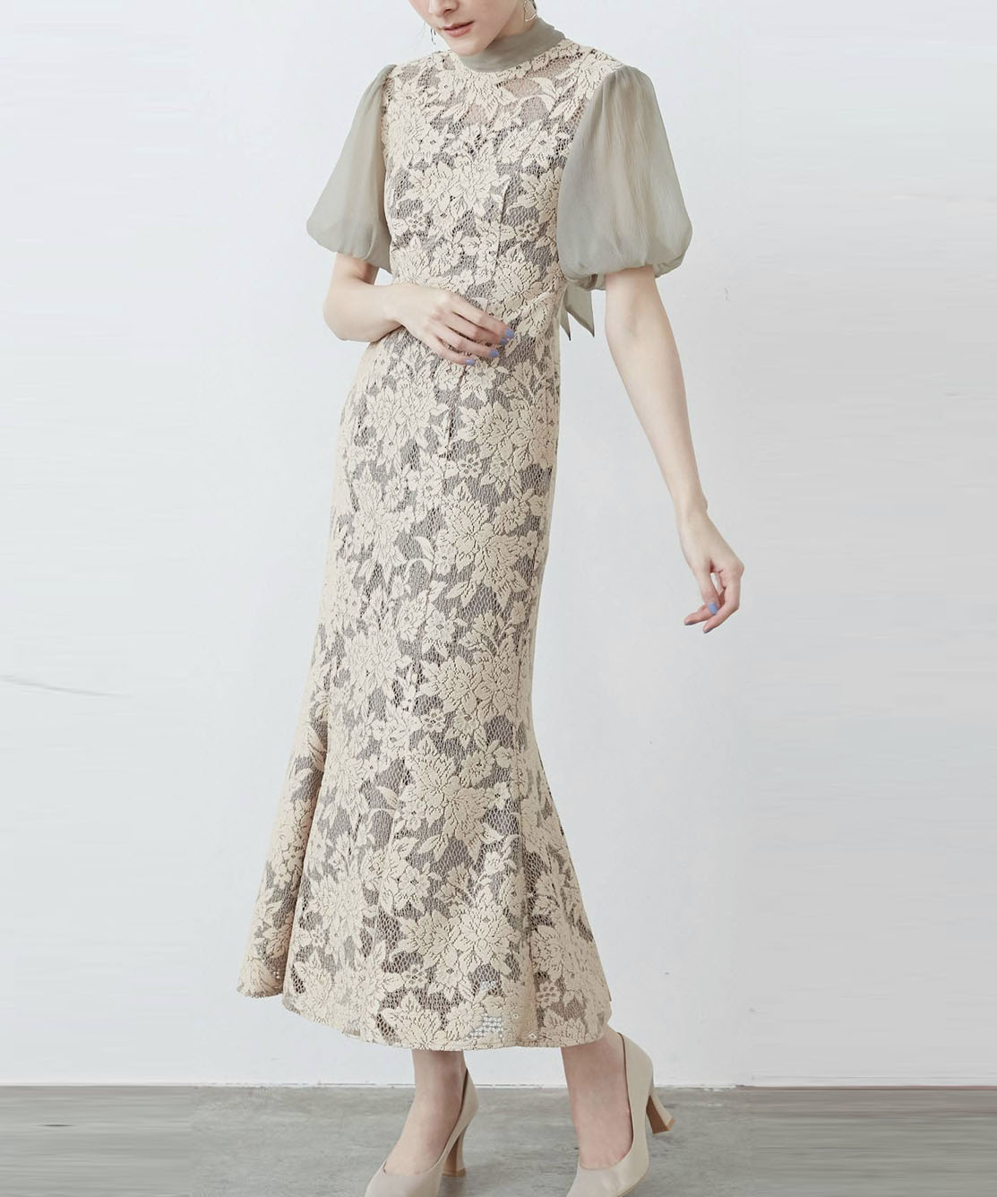素材感:上品なレースで高級感があります。バッグスタイルのリボンが特徴です。