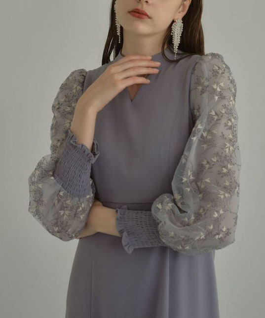女性らしいシルエットを演出する、すとんと落ち感のある生地を使用したワンピースドレスです。