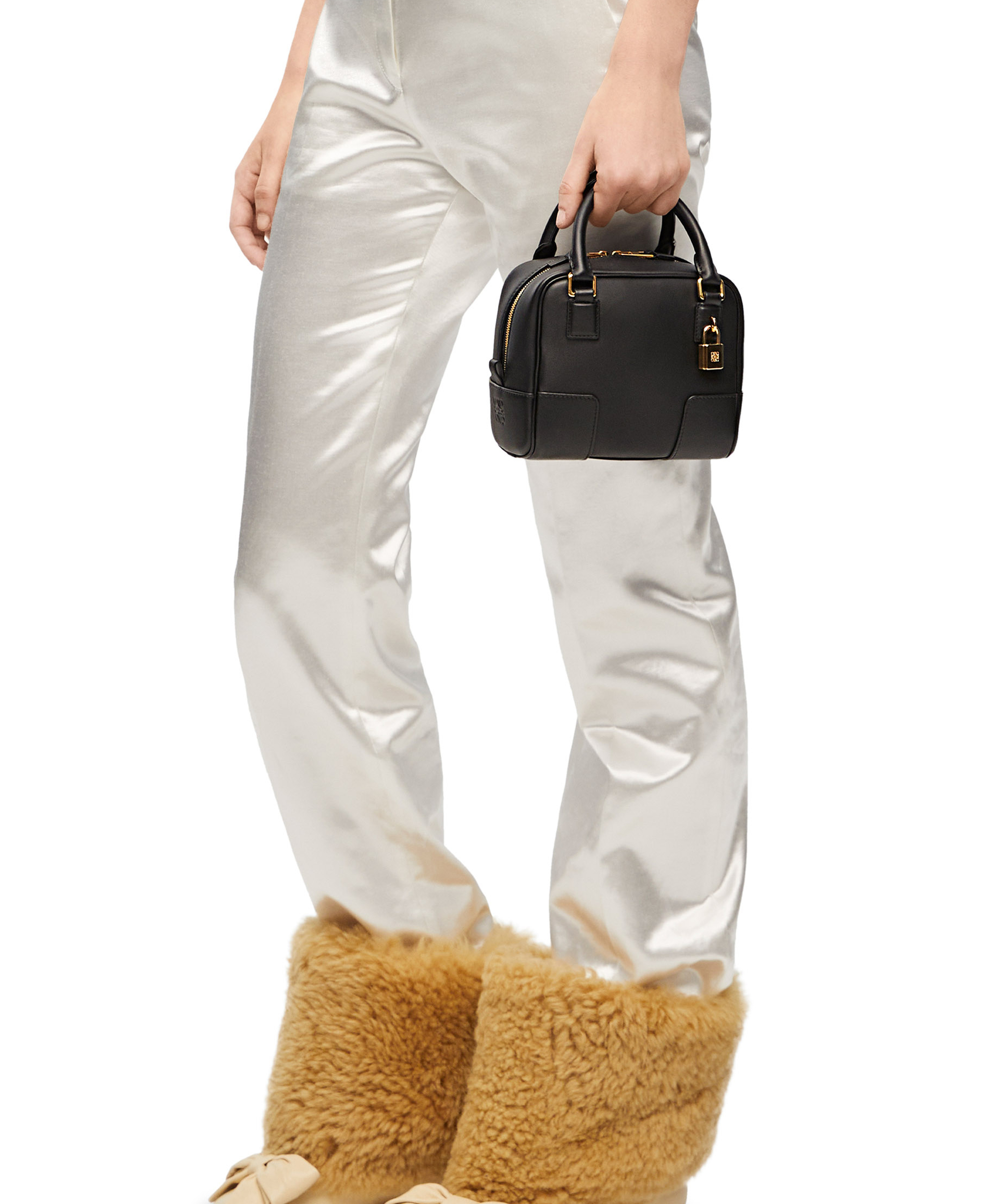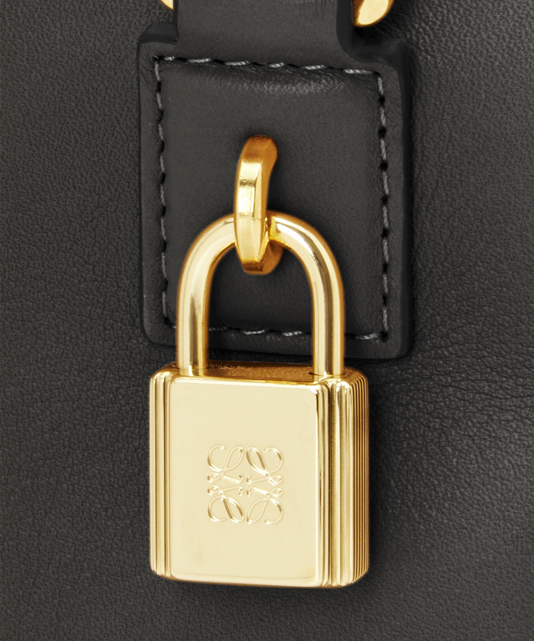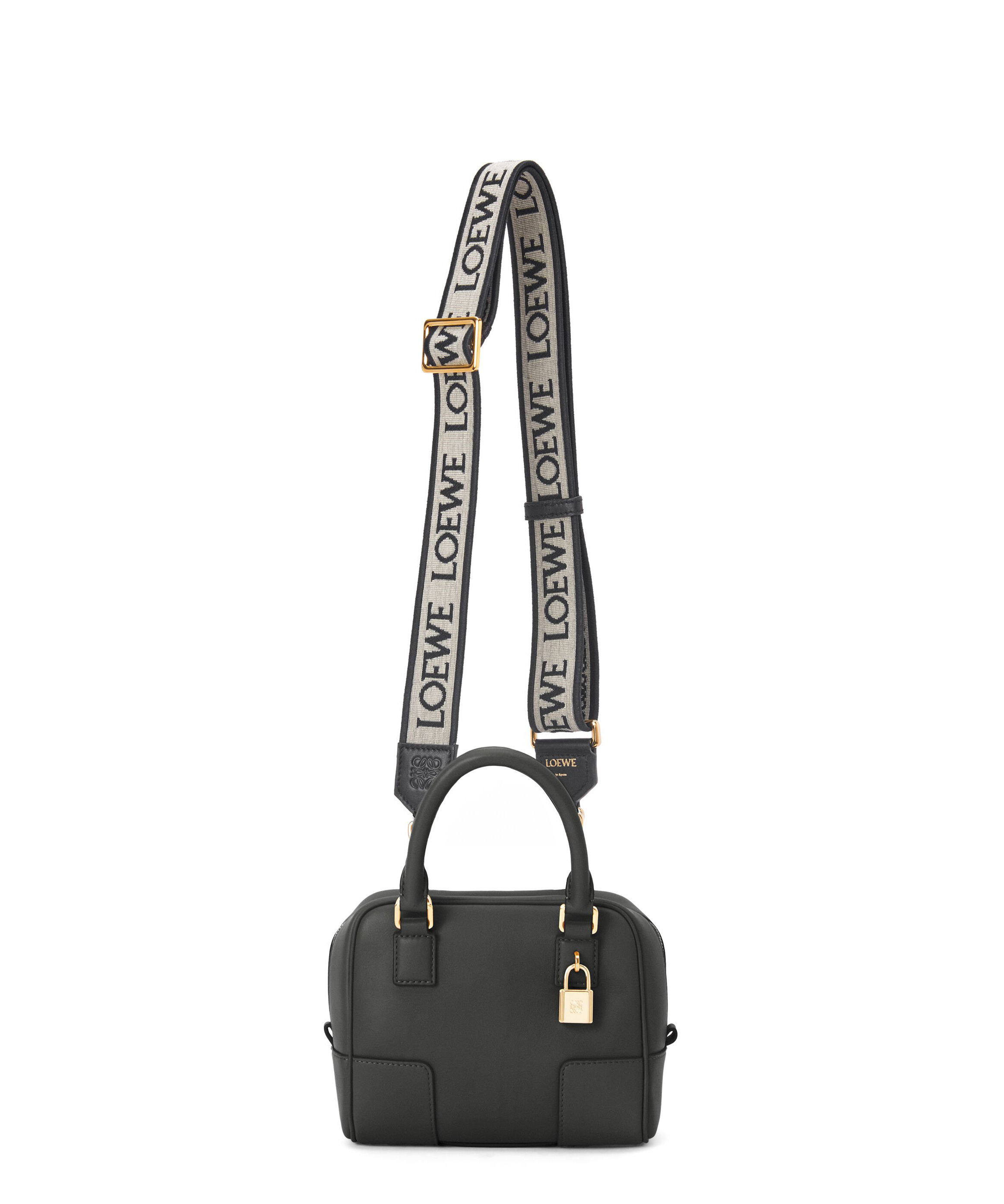 ロエベの定番バッグ。上品なデザインは大人女性にピッタリ。取り外し可能なロエベアナグラムジャカードストラップ付きスクエアミニバージョン。