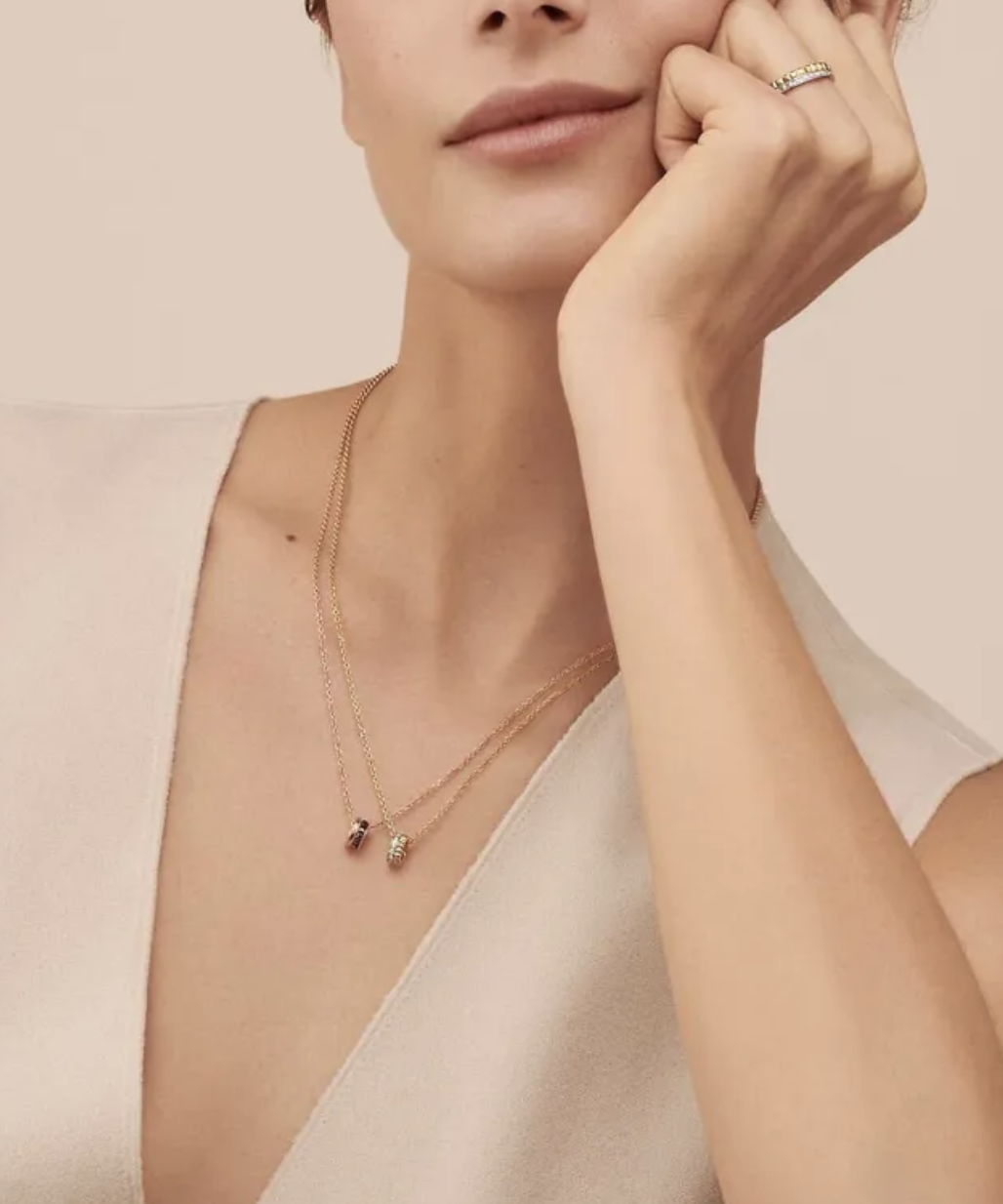 ブシュロンの大人気シリーズ【キャトル】のネックレス。重ね付けしているようなデザインが話題。幅広い年代の方にご着用いただけます。