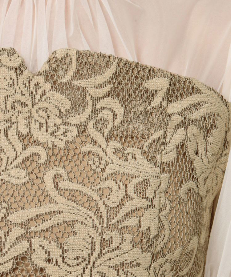 トップスと袖はシアーなチュールになっていて女性らしい抜け感を出した華やかなアイテムです。