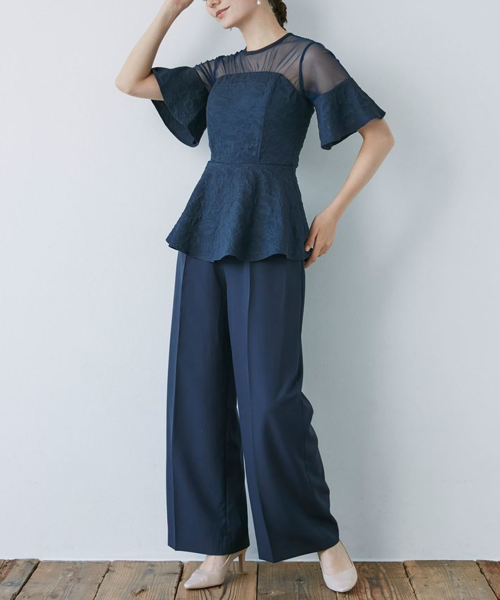 デコルテは透ける仕様になっていて女性らしさを演出します。