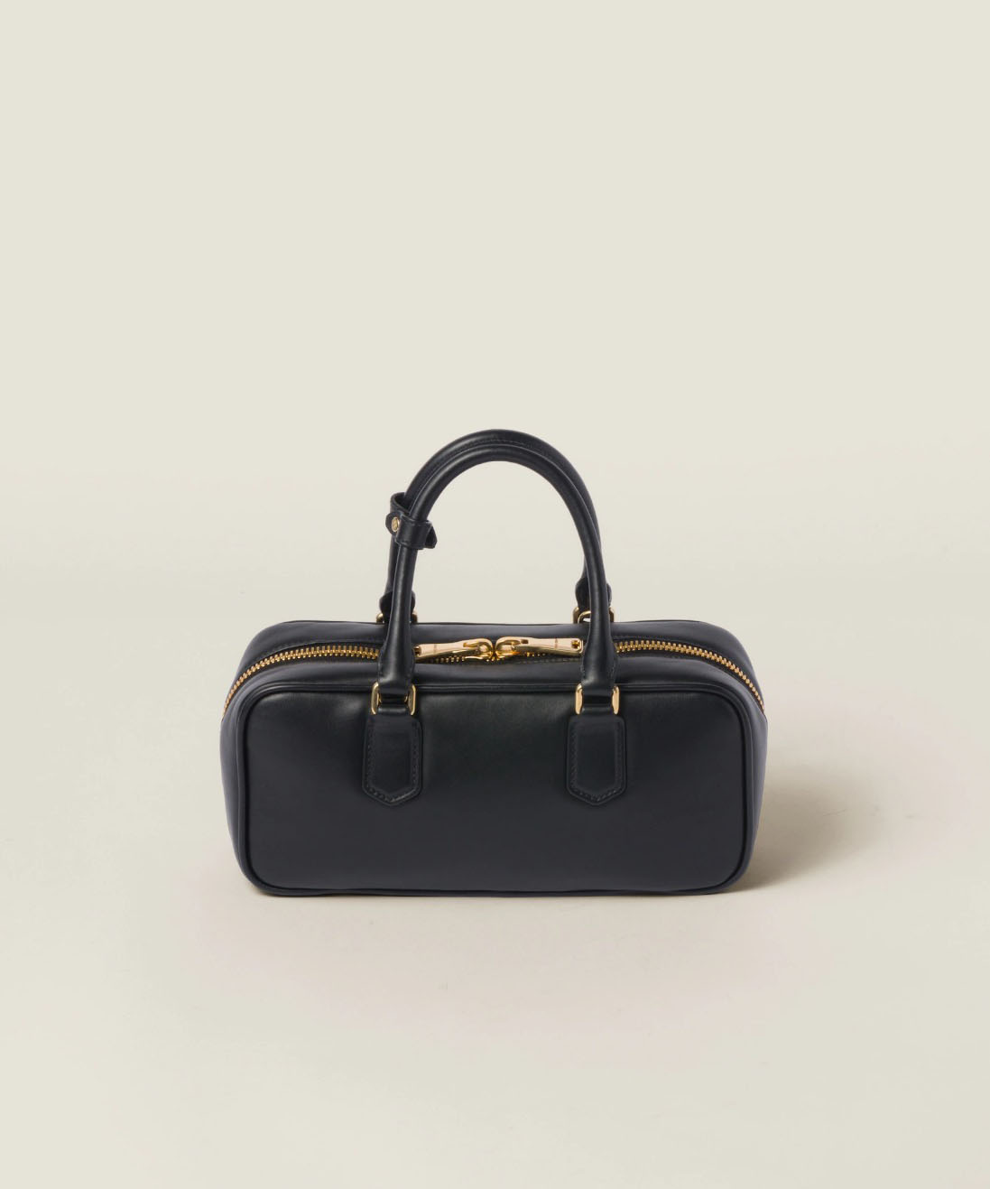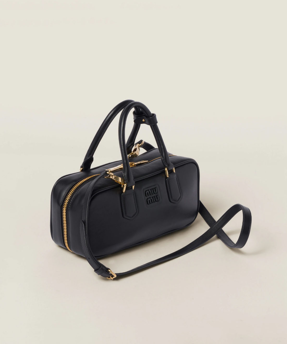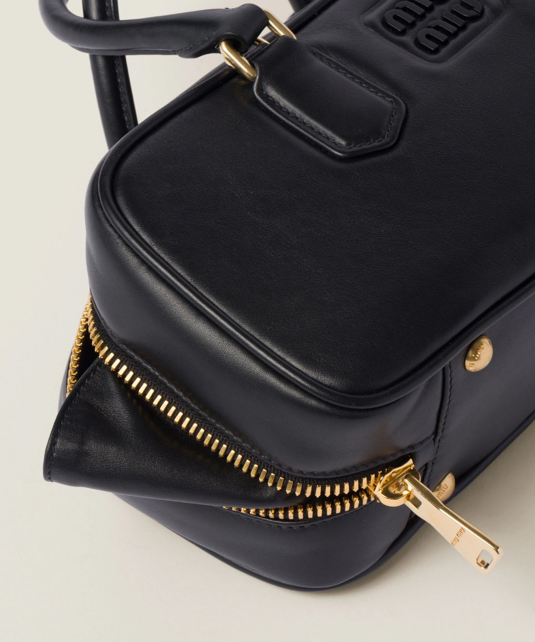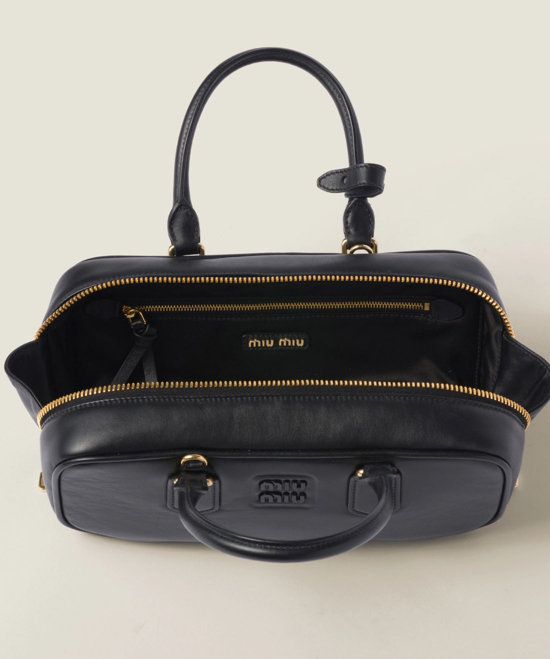 メタルパーツと同色のMIU MIU ロゴが、装飾と機能の境界を越え個性的でアイコニックな美しさを際立たせています。