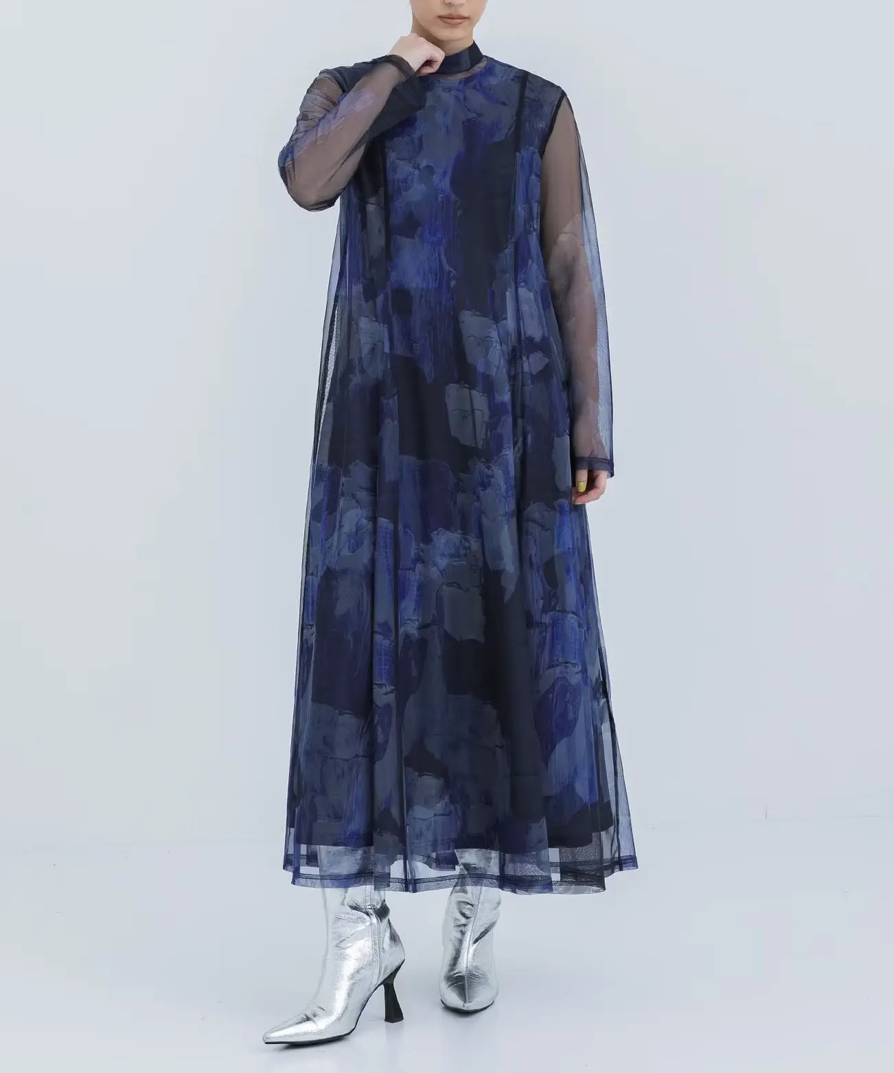 ノースリーブのワンピースとシアーの長袖ワンピースがセットになったアイテムです。