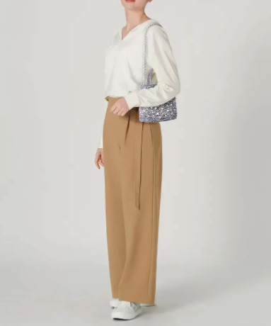 ワイヤーコードならではの適度な伸縮があるので、二つ折り財布・スマートフォン・リップスティックなどの必需品がぴったり収まるサイズです。