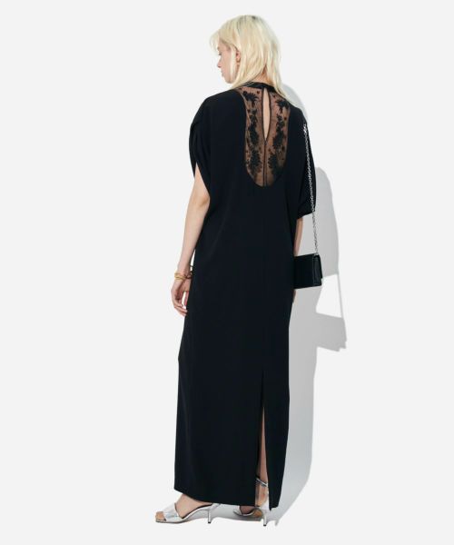 襟のカットラインや二の腕をカバーする袖のディテールが美しいスタイルを魅せてくれつつ、大人な女性も安心して着ていただけます。透け感のある大胆なバックスタイルは繊細なレースでエレガントなニュアンスを加えます。透け具合が気になる場合は、ご自身のインナーで調整可能です。(画像はインナー(レンタル不可)を着用しています)
