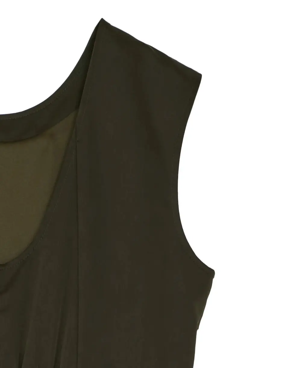 ウエストにたっぷりとタックを寄せた立体的なコクーンシルエットです。ウエスト後ろはゴムの仕様で身体にしっかりとフィットし、シルエットが美しいです。2枚目はブラックの画像となります。