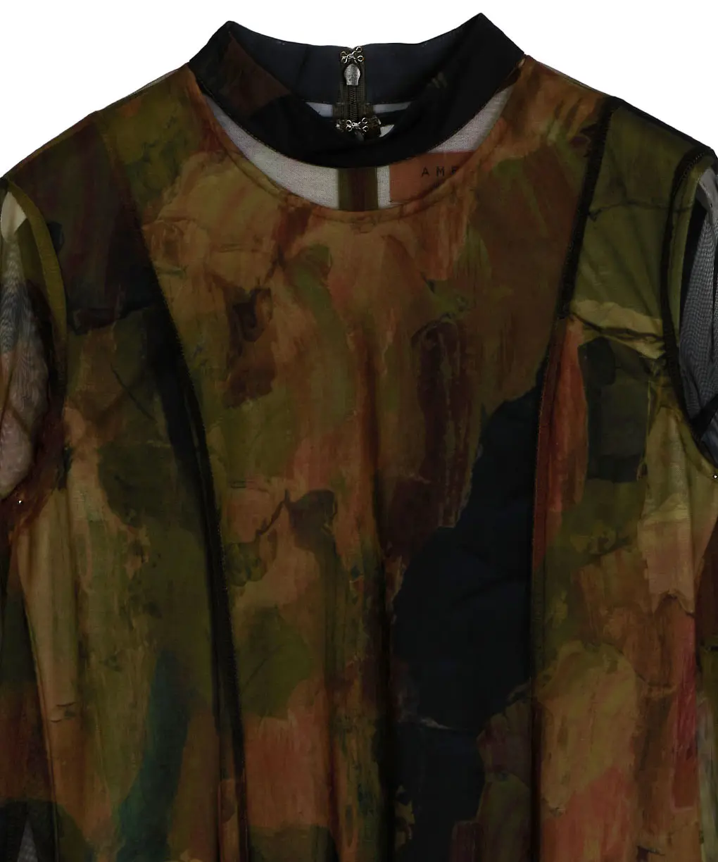 Ameriの大人気ドレス。レイヤードされているので、柄の莉っ体感を楽しんでいただけます。インナーワンピースは少し毛羽立ちがございます。