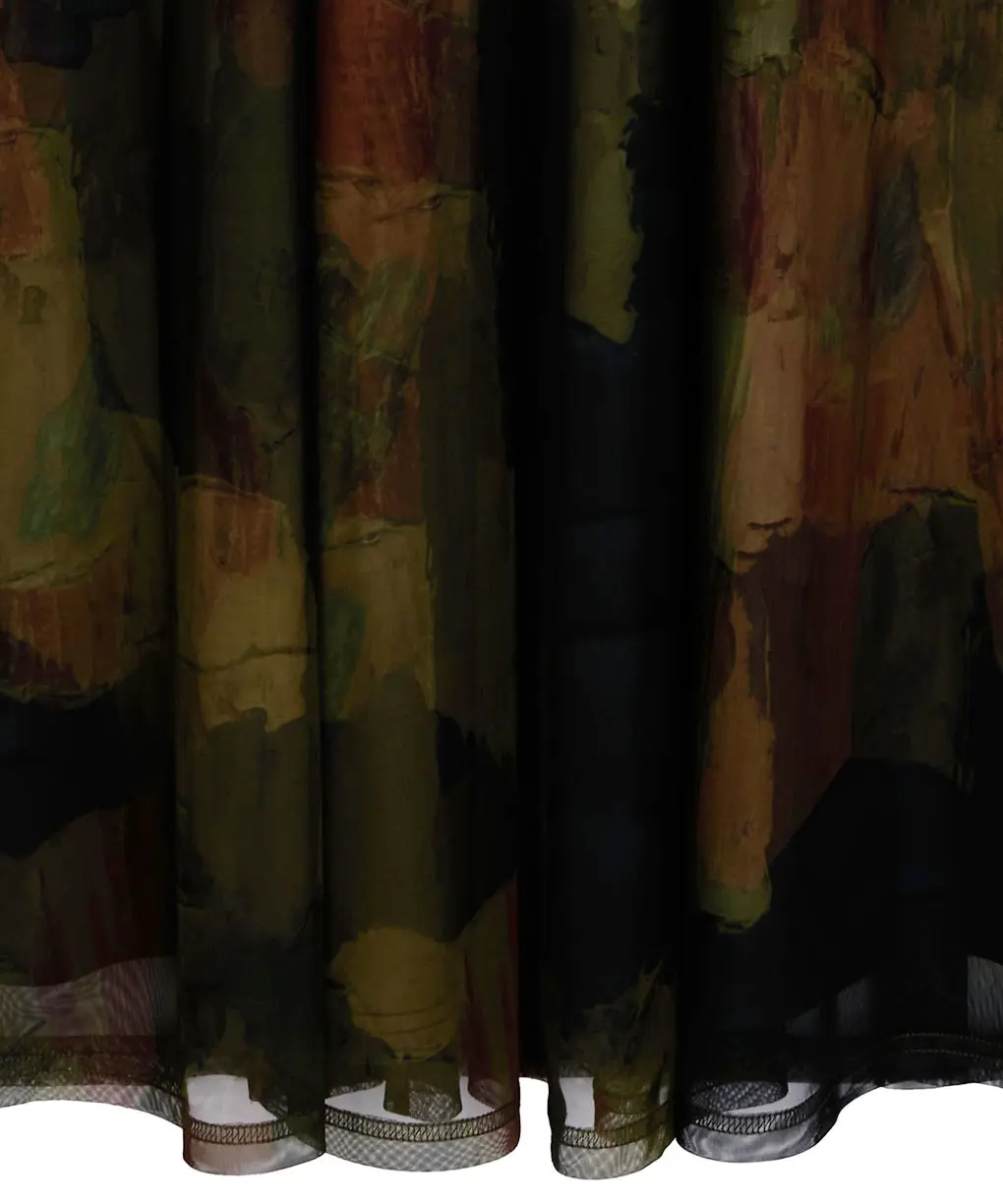 石膏アートからインスピレーションを受けて制作した、オリジナルのアート柄のレイヤードドレス。