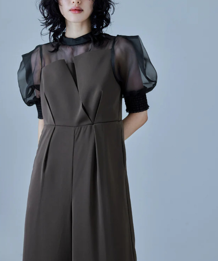 デコルテから袖にかけて適度な肌見せが女性らしい印象を与えてくれます。