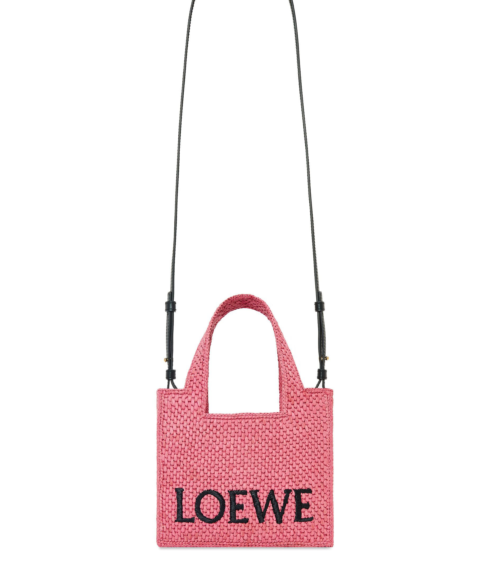 コントラスト色のLOEWEロゴをあしらったキューブ型のトートバッグ。