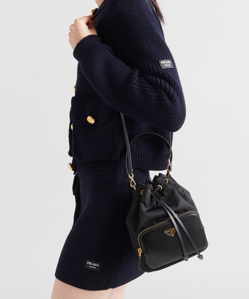 取り外し可能なハンドルとショルダーストラップ付でハンドバッグとしてもクロスボディバッグとしても使用できる、カジュアルで使い勝手に優れたバケットバッグ。
