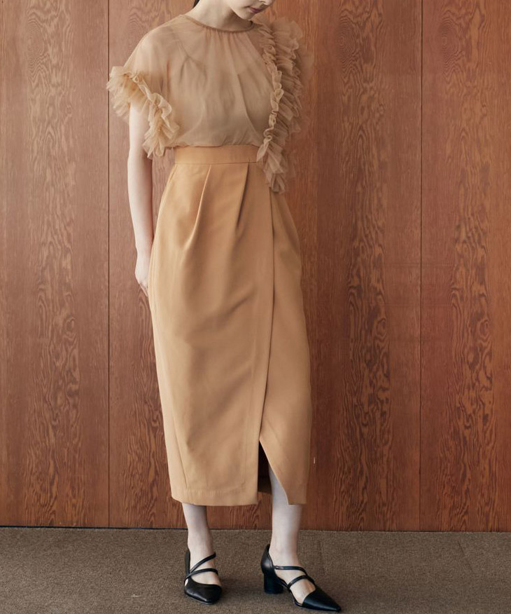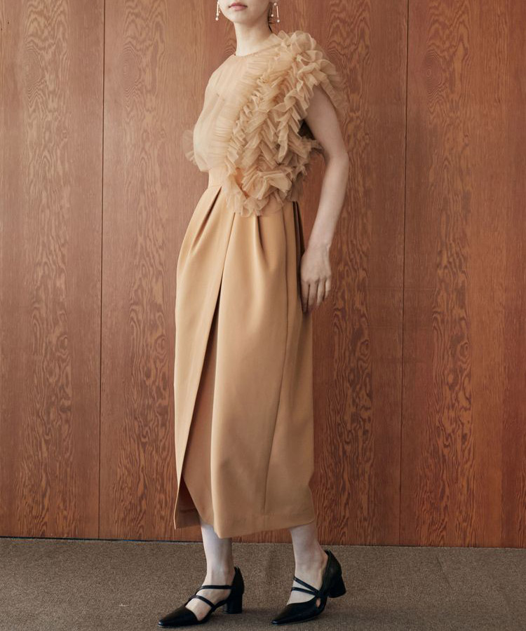 スカート部分はトレンドのコクーンシルエットを採用し、モダンな印象を与えます。