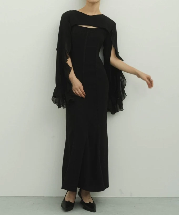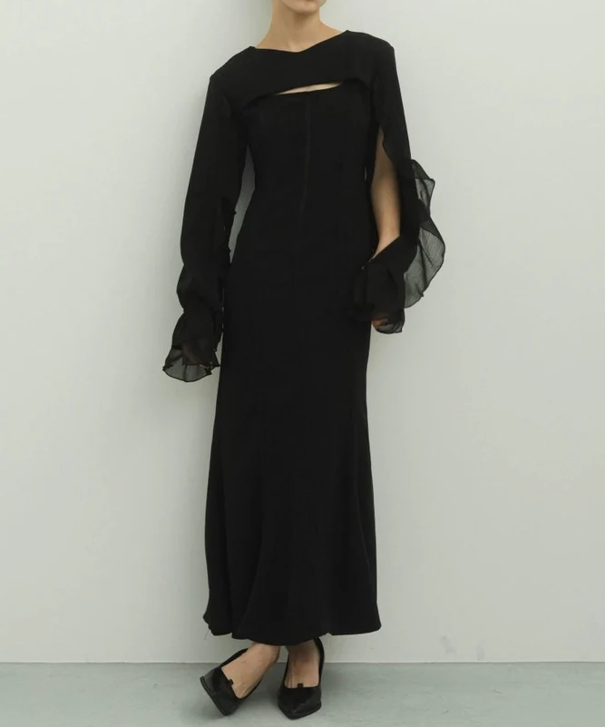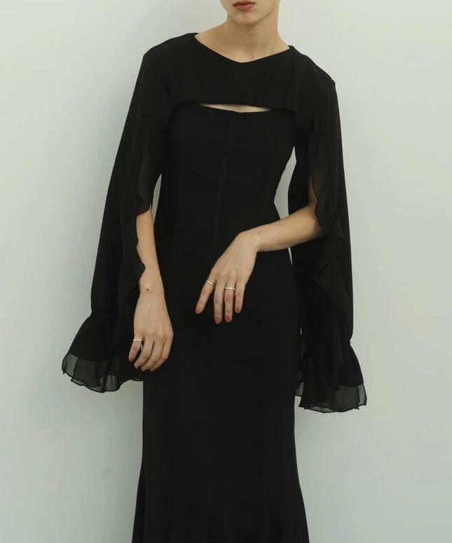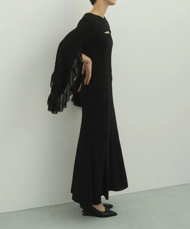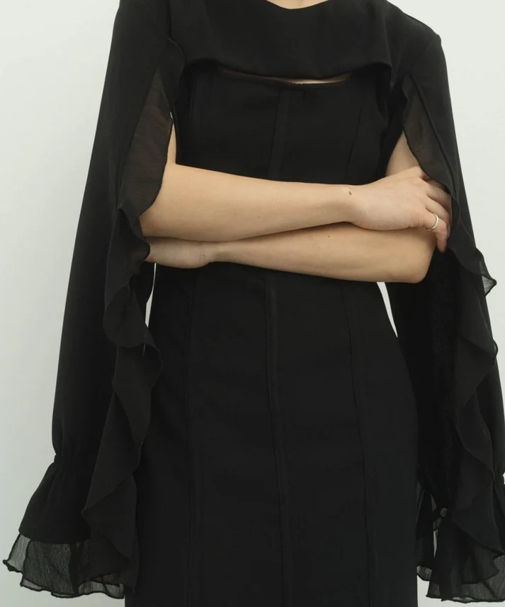 ストレッチ性のあるライトダブルクロス生地で仕立てられたワンピースは、フロントにグログランテープであしらわれたブランドロゴがモード感を高め、抜け感のあるクロップド袖丈でシーズンを問わず幅広いシーンで活躍する一枚です。