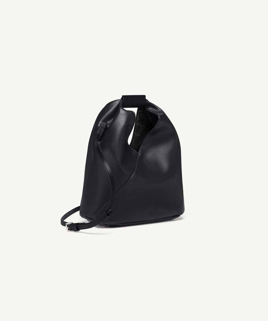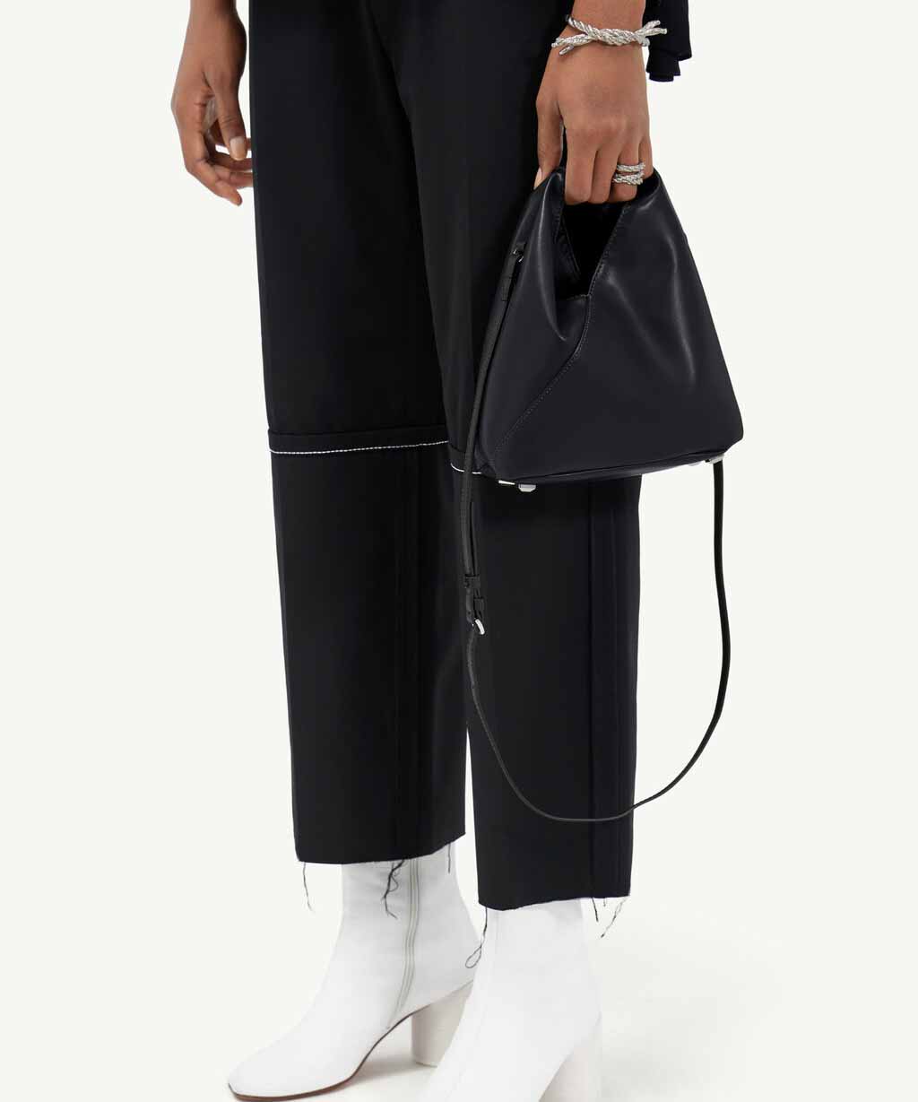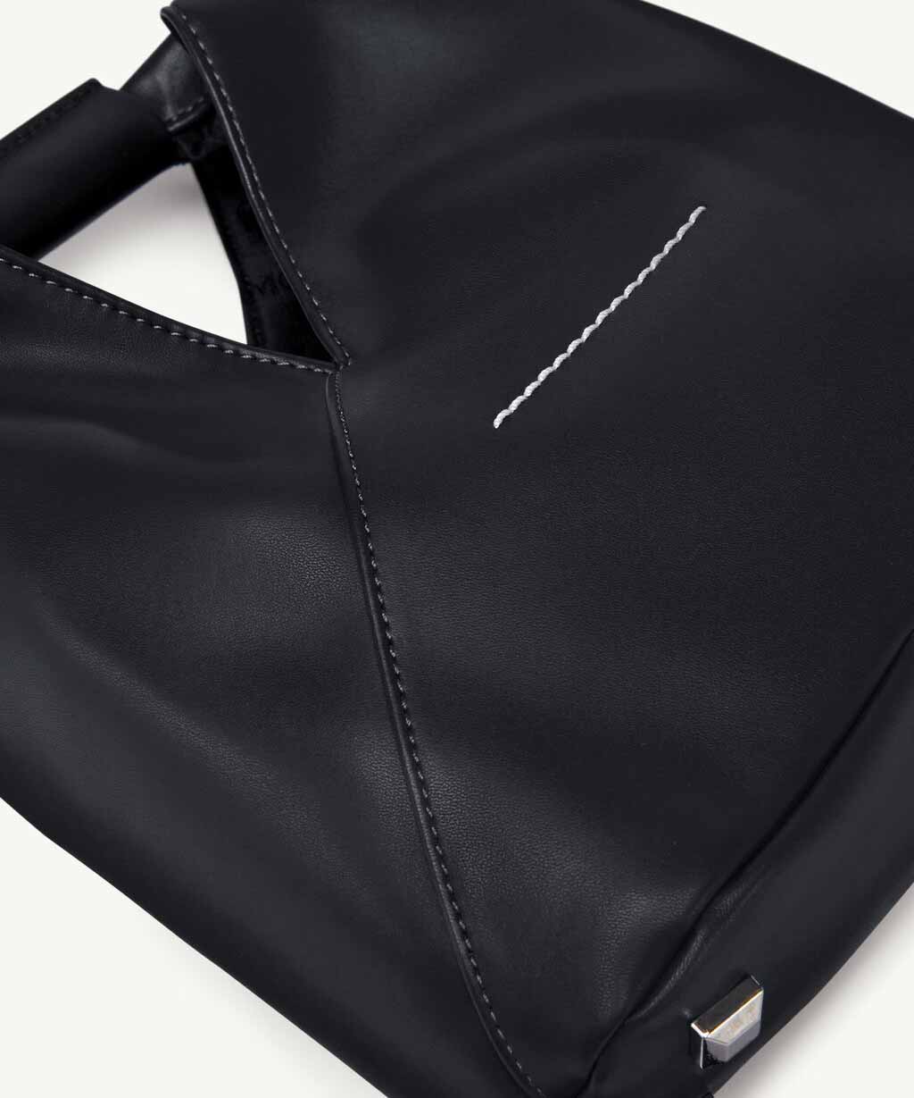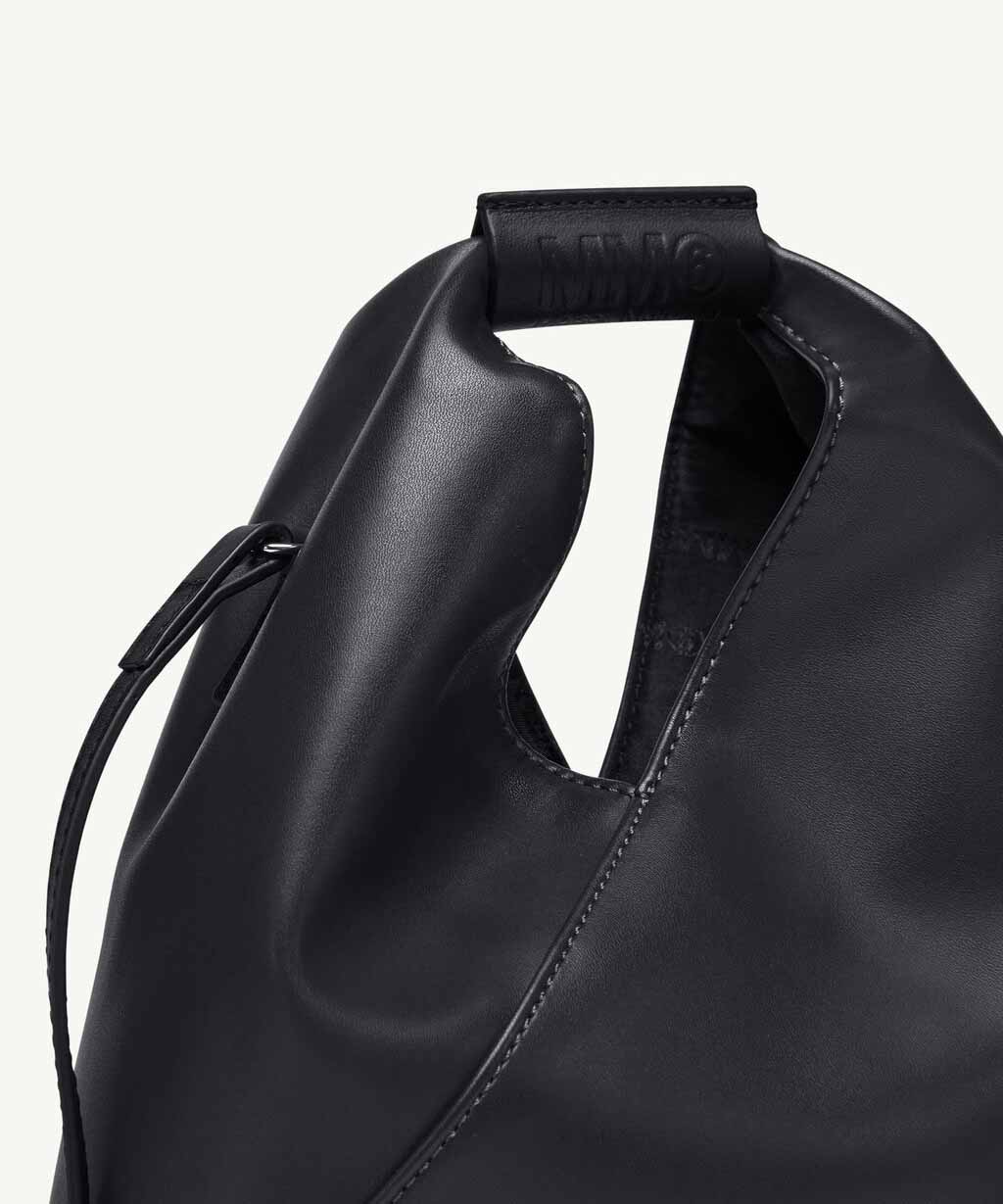 日本の伝統的な折り紙にインスパイアされた三角形のフォルムが特徴のバッグは、形を変えることができるスナップボタンを備え、メゾンの脱構築的なデザインコードを反映しています。