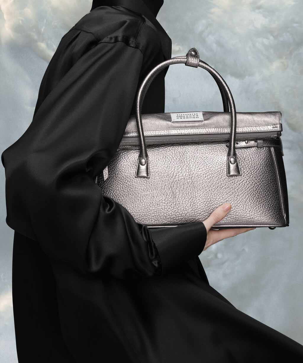 こちらはとても柔らかいゴートレザーを使用した「5AC」ハンドバッグで、特徴的なトップハンドルと折り返しデザインが魅力です。フロントのロゴラベルがアクセントとなり、「5AC」ラインの名前はフランス語の「SAC」に由来しています。また、メタル製リベットは手作業でレザーに覆われ、クリーンな仕上がりが洗練された印象を与えます。